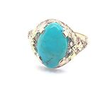 - 10k Yellow Gold Vintage Genuine Natural Turquoise Ring Applied Flowers (#J5213)