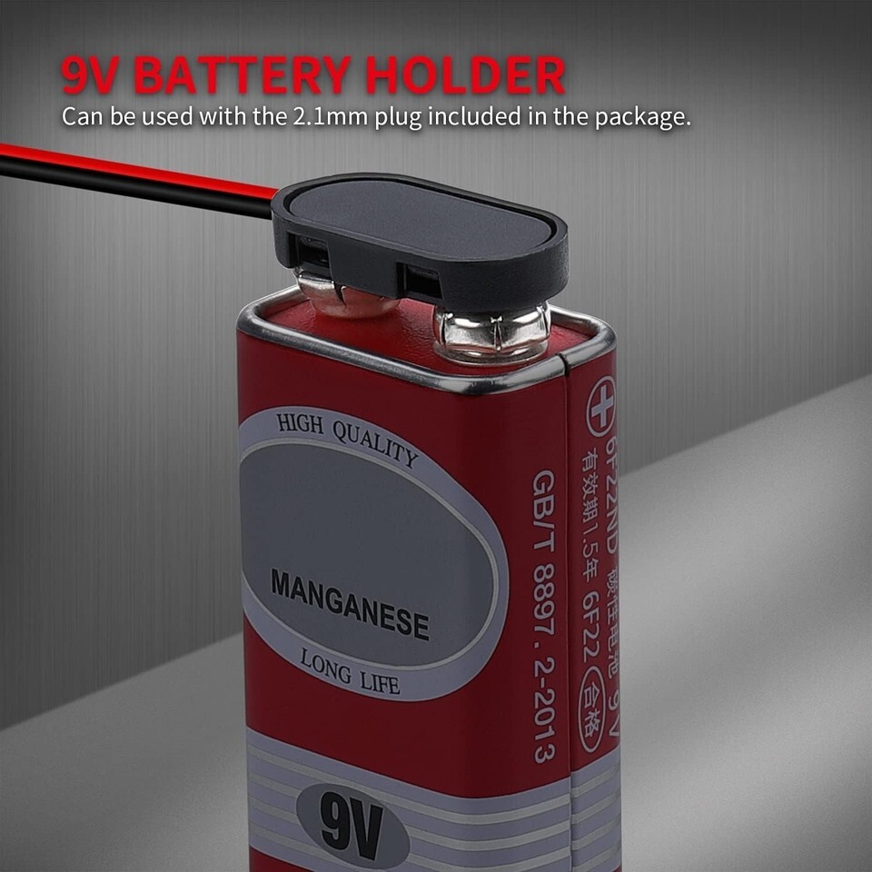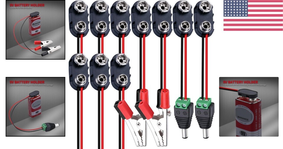 10pcs 9V Battery Connector with Snap Clips and Alligator Clips - Easy Install ? ? ? ? ? ? ? ? ? ? ? ? ? ? ? ? 10pcs 9V Battery Connector with Snap Clips and Alligator Clips Easy Install for Every Project Material Quality: Constructed from sturdy plastic and copper for enhanced durability. Excellent electrical conductivity ensures superior contact performance. Designed to prevent leakage, providing a safe and reliable option for your power connections. Specifications: Wire Length: 5.9 inches (150MM) Wire Color: Black and Red Overall Size: 0.93*0.47*0.16 inches (23.6*11.9*4 MM) Easy Installation: Designed with bare ends for straightforward installation, effortlessly replacing a broken battery connector. Perfect for both permanent replacements and as a handy backup solution. Versatile Applications: Includes 2 pairs of alligator clips and a 2.1mm X 5.5mm DC male power plug, compatible across various electronic devices. Ideal for use with LED strip lights, student experiments, and any other devices requiring a 9V battery. Important Notice: This connector is specifically designed for 9V batteries; ensure compatibility before purchasing. For safety reasons, avoid using while your hands are wet. Why Choose Our 9V Battery Connector? Whether you're embarking on a DIY project, replacing old connectors, or conducting science experiments, our 9V Battery Connector offers unmatched reliability and ease of use. With robust materials ensuring safety and conductivity, this essential tool is perfect for both hobbyists and professionals. Don't compromise on quality; elevate your projects with our 10pcs 9V Battery Connector Set today! Shipping Free Fast Shipping - We offer free shipping to most of the USA with a normal delivery time of 3-7 days. However, due to the current situation, additional delivery time (up to 3 weeks) may be required for some items. Alternative Carriers - We may use alternative carriers (e.g. USPS, FedEx, UPS, etc.) to ensure your package arrives safely and on time. Due to the use of multiple carriers, we are unable to provide a tracking number automatically. Handling Time - Orders are processed and shipped within 1-2 business days of receiving cleared payment. Shipping Restrictions - Shipping to Alaska, Hawaii, Puerto Rico, Guam, and other US territories may incur shipping charges or delivery restrictions. Please contact us before ordering, or your order can be refunded/cancelled. State Restrictions - There may be restrictions based on your state of purchase. For example, certain items may not be shipped to California due to state regulations. Contact for Tracking Updates - If you require tracking updates or have any concerns about the delivery of your order, please feel free to contact us, and we will be happy to assist you. Return 30-Day Hassle-Free Returns - We want you to be completely satisfied with your purchase. If you are not, you can return the item within 30 days of receiving it for a full refund or exchange. Easy Return Process - To start a return, simply contact us and we will provide you with a prepaid return shipping label and detailed instructions. Restocking Fee - There are no restocking fees for returns. However, the buyer is responsible for return shipping costs if the return is not due to a seller's error. Refund Processing Time - Refunds will be processed within 5 business days of receiving the returned item in its condition. Payment We accept all major credit cards, PayPal, and Apple Pay for your convenience. Your payment information is secure and encrypted to ensure a safe and seamless transaction. Please complete your payment within 3 days of purchase to avoid any delays in shipping. Feedback Your feedback is extremely important to us. We strive to provide the best products and customer service possible. If you are satisfied with your purchase, please take a moment to leave us a positive review. If you have any concerns or issues with your order, please contact us before leaving negative feedback. We are committed to resolving any problems and ensuring your satisfaction. Contact Us If you have any questions or concerns, please feel free to out to our customer support team. You can contact us through the messaging system. We are available Monday to Friday, 9:00 am to 5:00 pm EST, and we will do our best to respond to your inquiry within 24 hours. Buy it now and enjoy a pleasant shopping experience! Unit Quantity: 1 Material: Copper,Plastic Compatible Wire Gauge (AWG): 9V Battery Connector Number of Ports: 1 Connector Style: Bare Ends Number of Poles: 1 Number of Pins: 1 Compatible Mounting Type: Wire Type: Battery Connector Color: Black Termination Type: Bare Contact Material: Copper Unit Type: oz