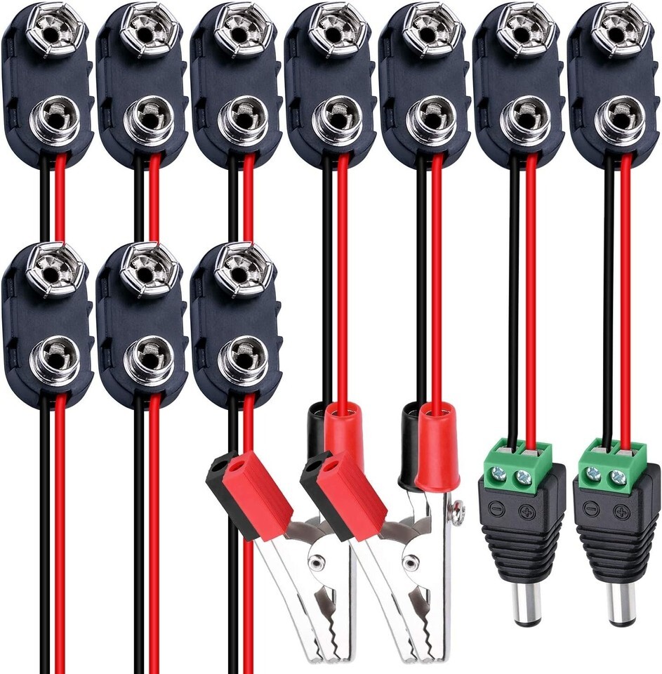10pcs 9V Battery Connector with Snap Clips and Alligator Clips - Easy Install