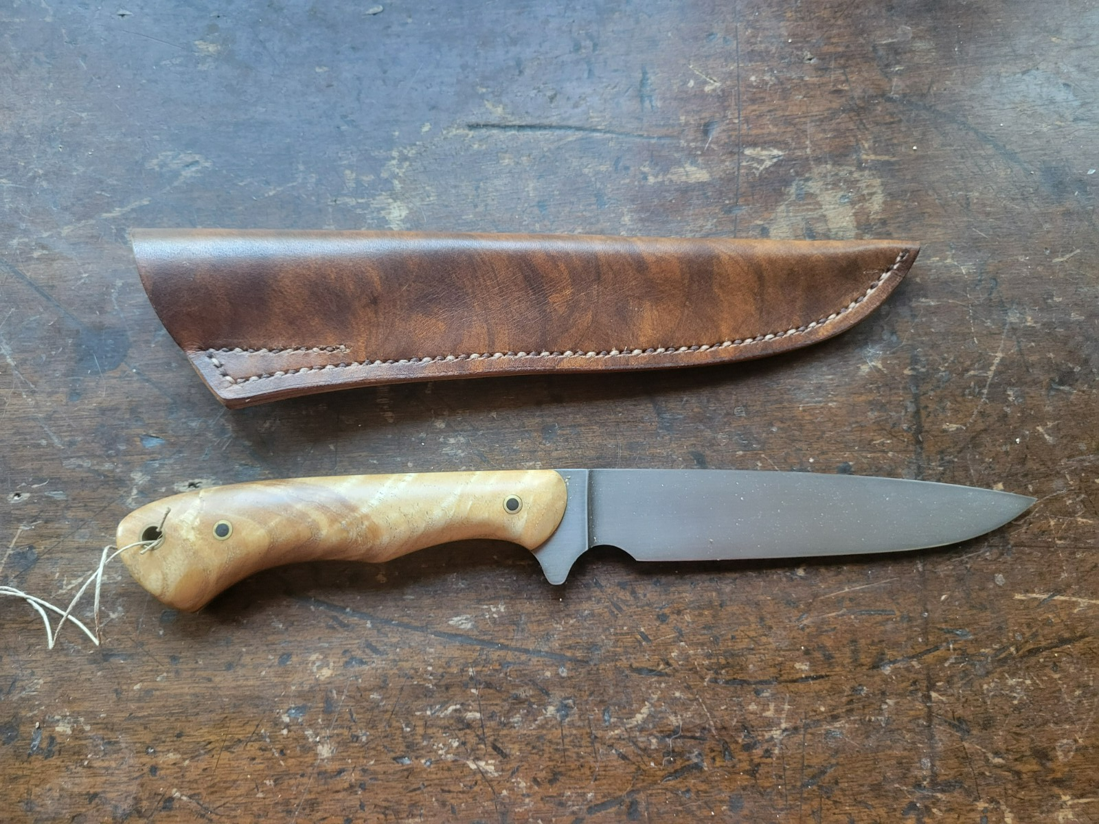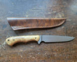 - 11.5" Damascus Steel Hunting Skinning Knife Composite Handle Leather Sheath