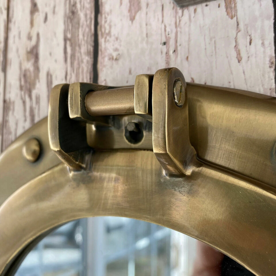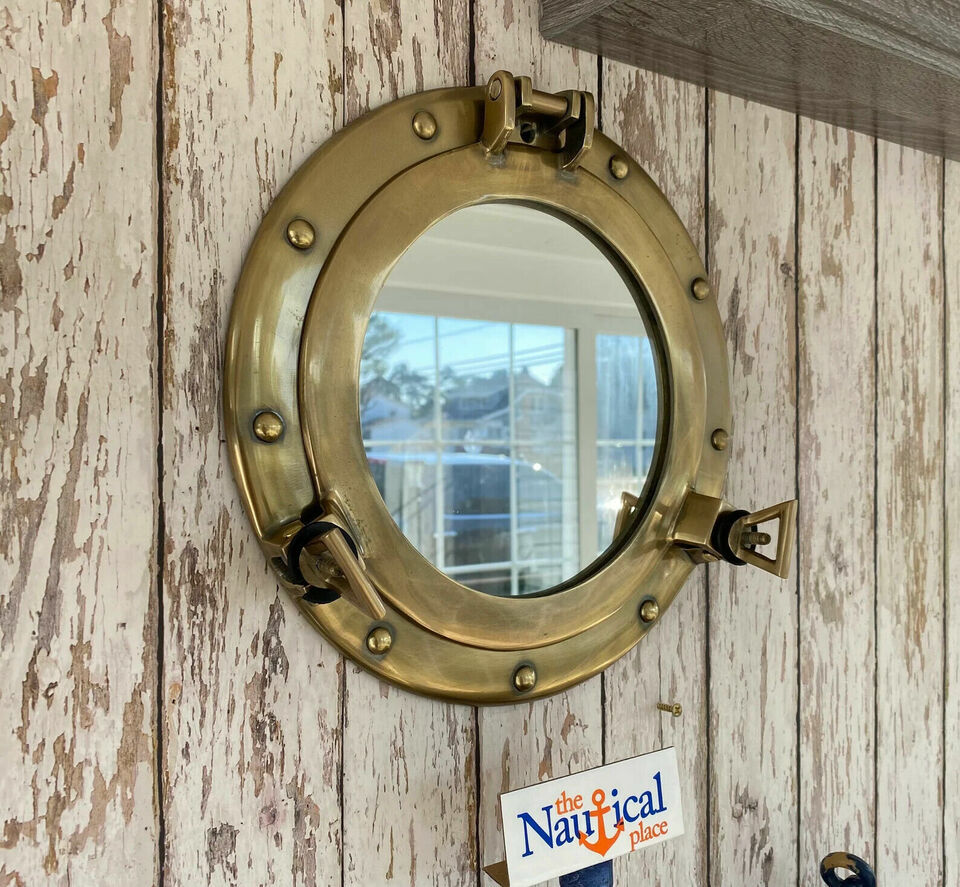 11" Antique Brass Finish Porthole Mirror ~ Nautical Maritime Wall Décor ~ Window