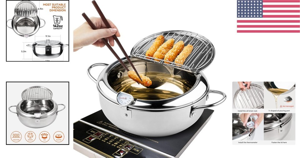 - 11-Inch Stainless Steel Tempura Fryer Pot with Lid - Safe & Durable Design