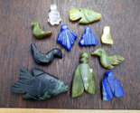 - 11 pcs Vintage Lapis Lazuli, jade Crystal Stone Birds Fish Amulets Pendants