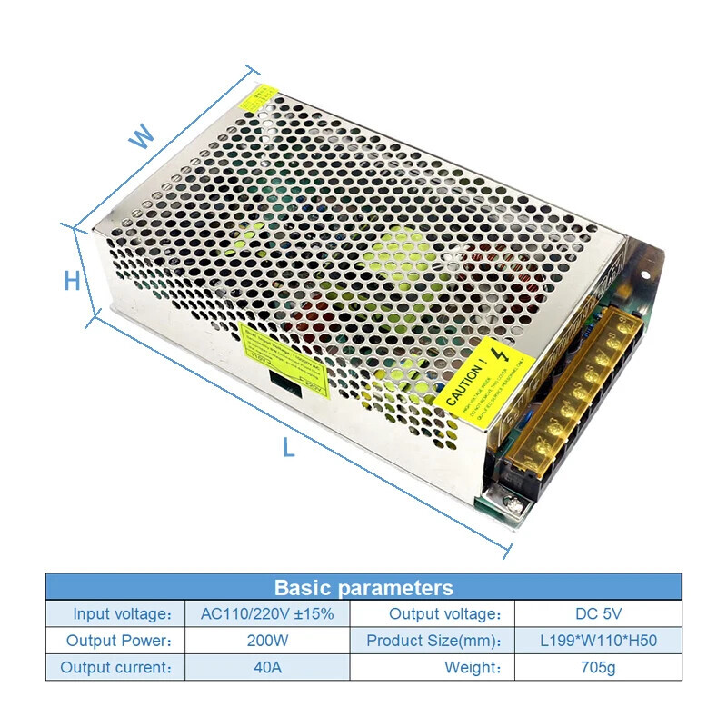 AC/DC-enclosed SMPS Converter 110/220V AC to DC 5V 40A 200W Switch Mode Power Supply