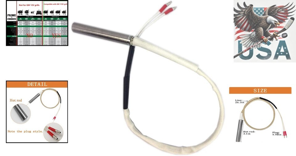- 110V Replacement Igniter for Green Mountain Daniel Boone Jim Bowie Pellet Gri...