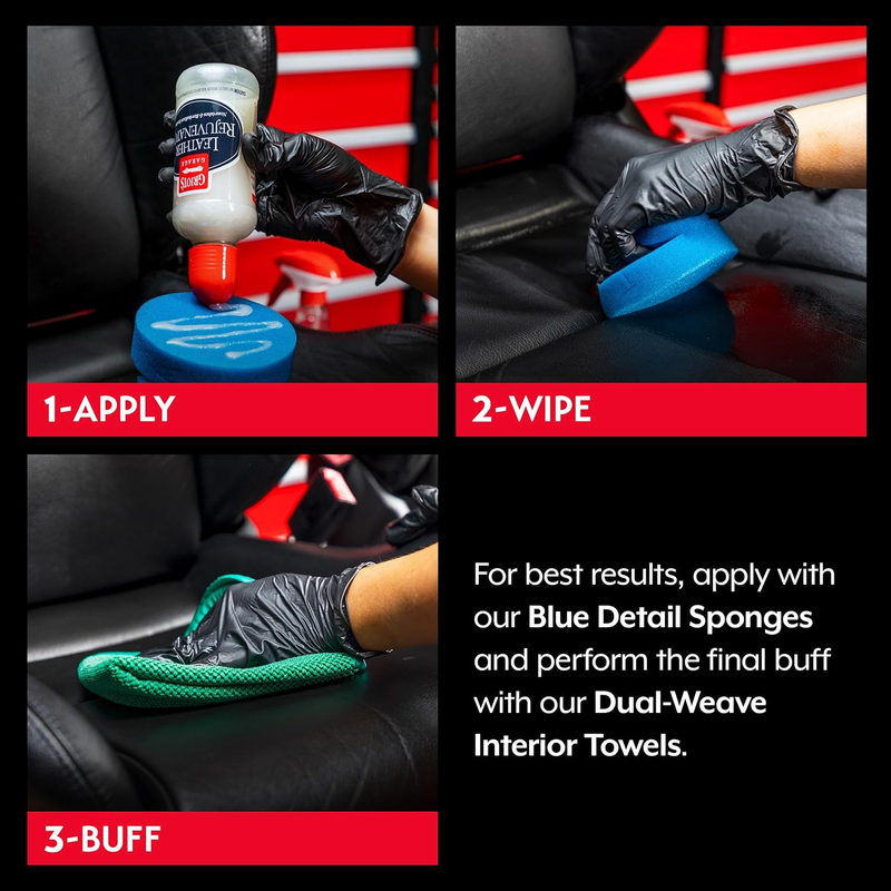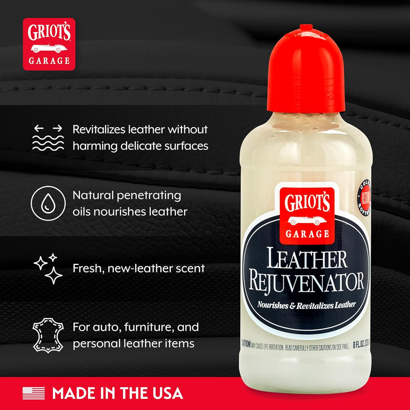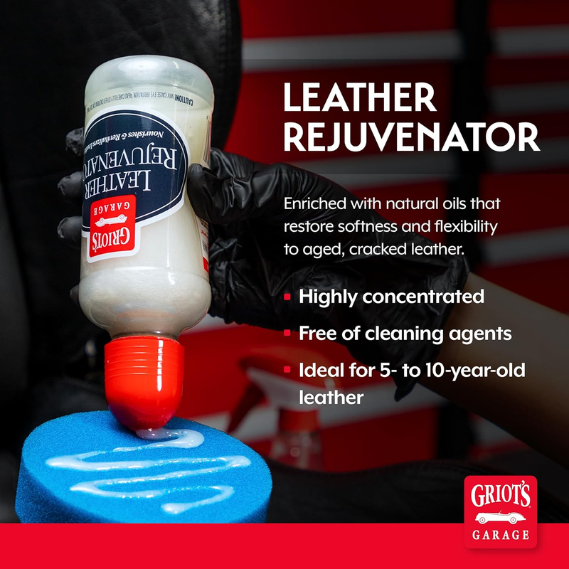 Bring dry, cracked, and neglected leather back to life with Leather Rejuvenator?a powerful, 100% pure vehicle leather conditioner made specifically to repair leather that?s been left untouched for years. Free of cleaning agents, this car leather conditioner is packed with natural oils that deeply penetrate to soften, hydrate, and restore flexibility to even the most worn-out leather surfaces. Whether you?re reviving old car seats, a leather sofa, or restoring a barn-find interior, this brown leather conditioner is up to the task. It?s ideal for 5?10-year-old leather that needs serious care. Safe for use on all types of leather?automotive, home, and apparel, this leather conditioner for cars also works wonders on jackets, furniture, and more. It leaves behind a pleasant, natural leather scent and helps prevent future cracking and wear. For best results, apply with a soft applicator sponge after cleaning the surface thoroughly. Whether you're a professional detailer or a weekend DIYer, this is the ultimate auto leather conditioner for dry, faded, or stiff leather that needs a second chance.