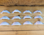12 CUP DRAWER PULLS! SALE INCLUDES 12 PULLS! DISTRESSED WHITE COLOR! 3 1/2" WIDE AND 1 1/2" FROM TOP TO BOTTOM! HOLE TO HOLE MEASUREMENT IS 3", BUT PLEASE WAIT UNTIL YOU RECEIVE TO DRILL HOLES AS EACH CAN VARY SLIGHTLY! VINTAGE IMPRINT DESIGN ON EACH PULL! SHIPPED OUT WITHIN ONE BUSINESS DAY, SO YOU CAN ENJOY FAST! FREE SHIPPING!