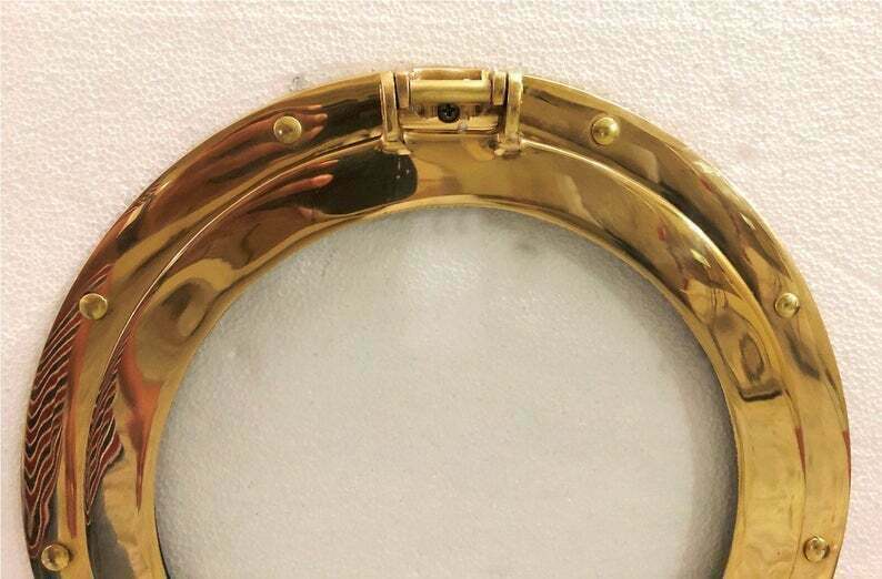 12''Antique Brass Porthole Gold Finish Wall Hanging Ship Porthole Decor