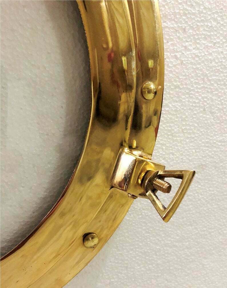 - 12''Antique Brass Porthole Gold Finish Wall Hanging Ship Porthole Decor