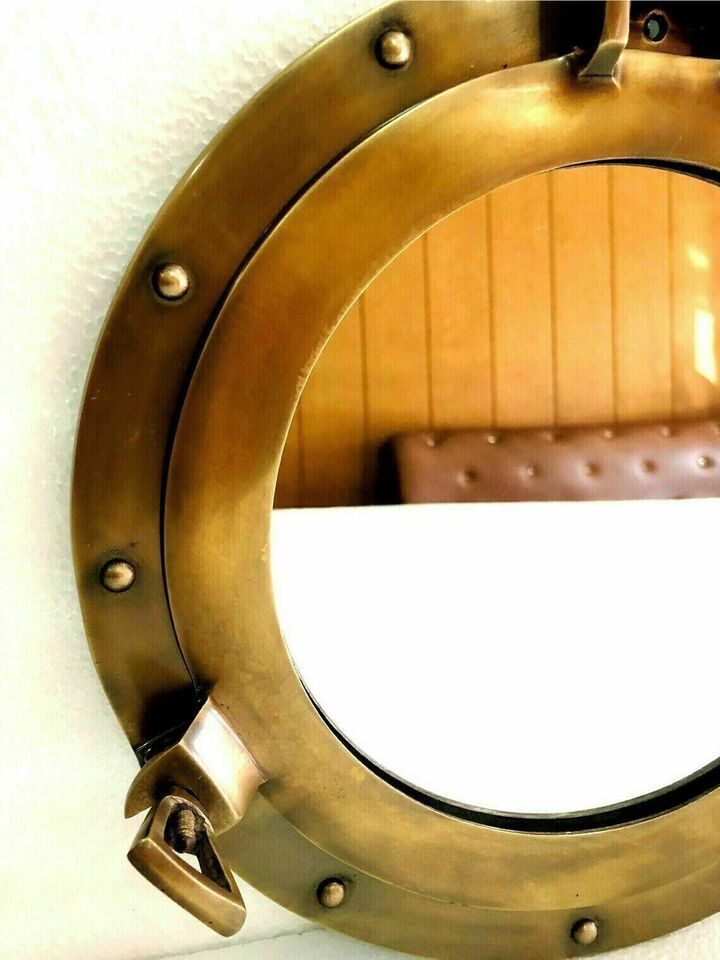 - 12"Antique Nautical Brass Finish Porthole Mirror Home Wall Decorative Designer
