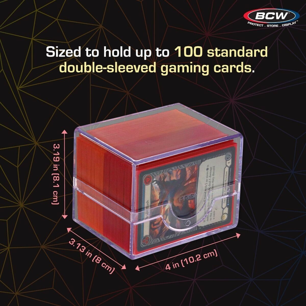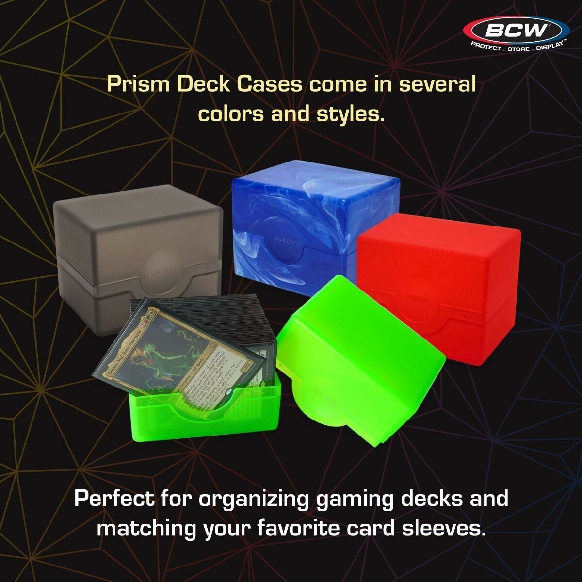 The Pale Moon White Prism Deck Cases are made of strong, translucent plastic, and have a matte shell. These boxes hold a deck of cards in a horizontal format, which makes it easy to remove the cards. The boxes have a secure snap closure, and squeeze to open. The fit will not allow the case to open accidentally, so cards stay safe during transport. Sized to hold 100 standard double-sleeved cards, the Prism cases are perfect for a variety of games, from Commander decks for Magic the Gathering, to constructed Flesh and Blood decks. Sturdy, colorful, and secure, the Prism cases will make a great addition to any CCG fan's arsenal.