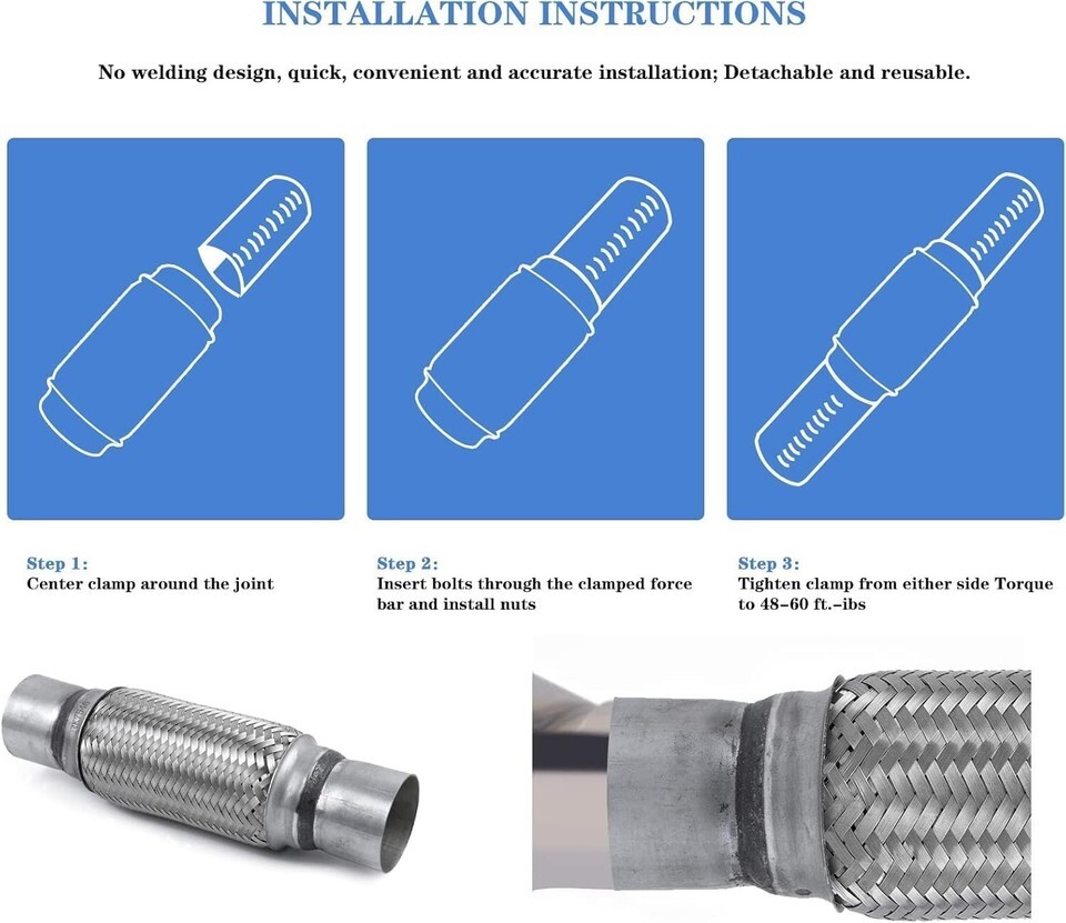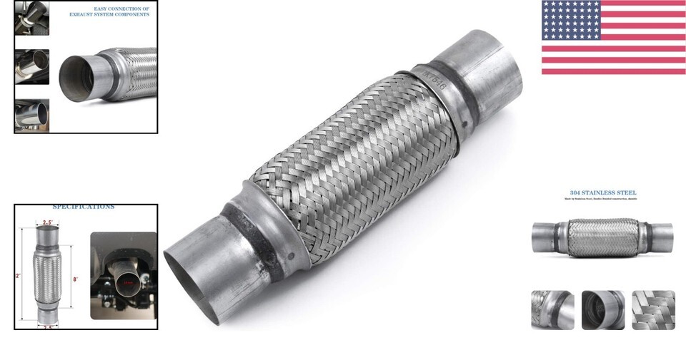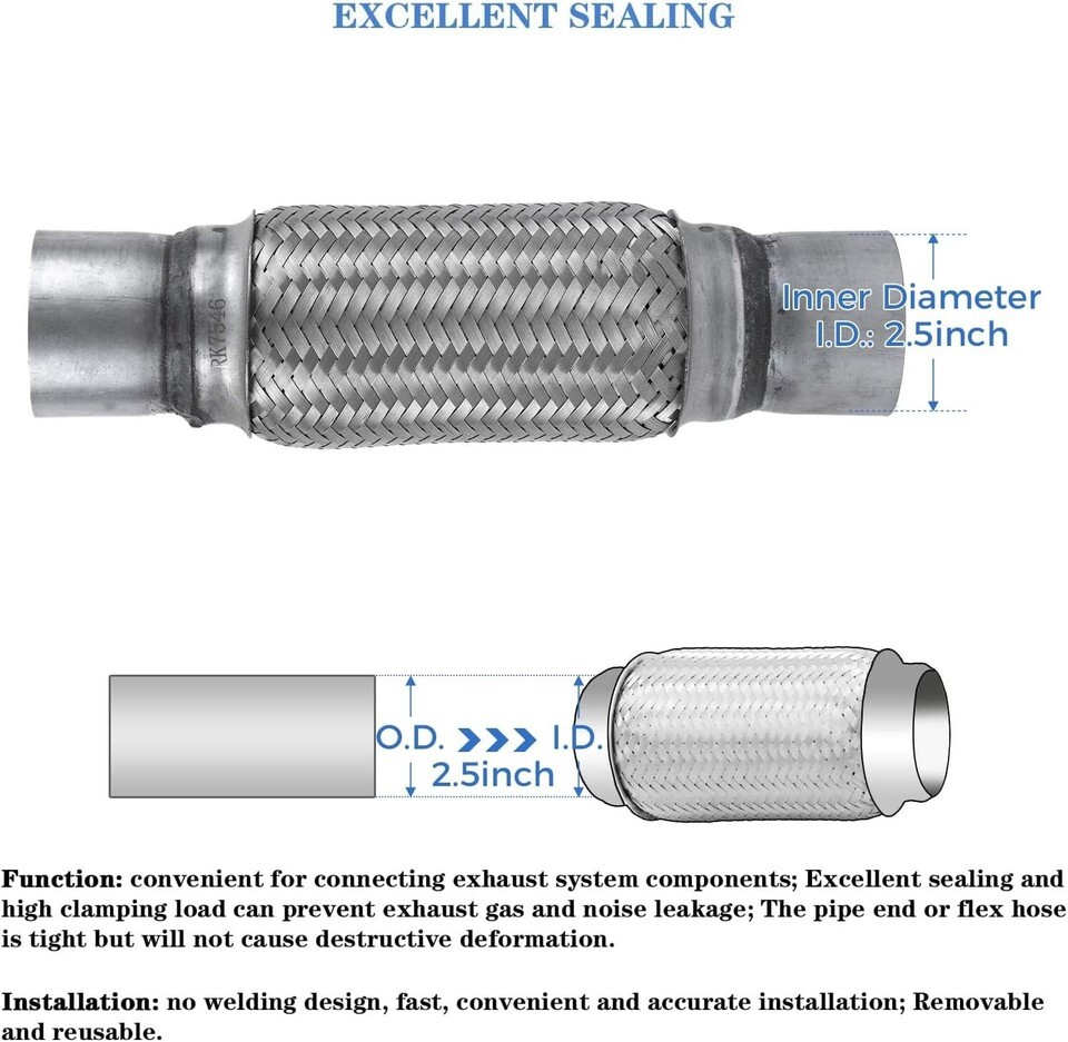 - 12 Inch 2.5" Exhaust Flex Pipe - Weld-On/Clamp-On Installation, Universal Fit