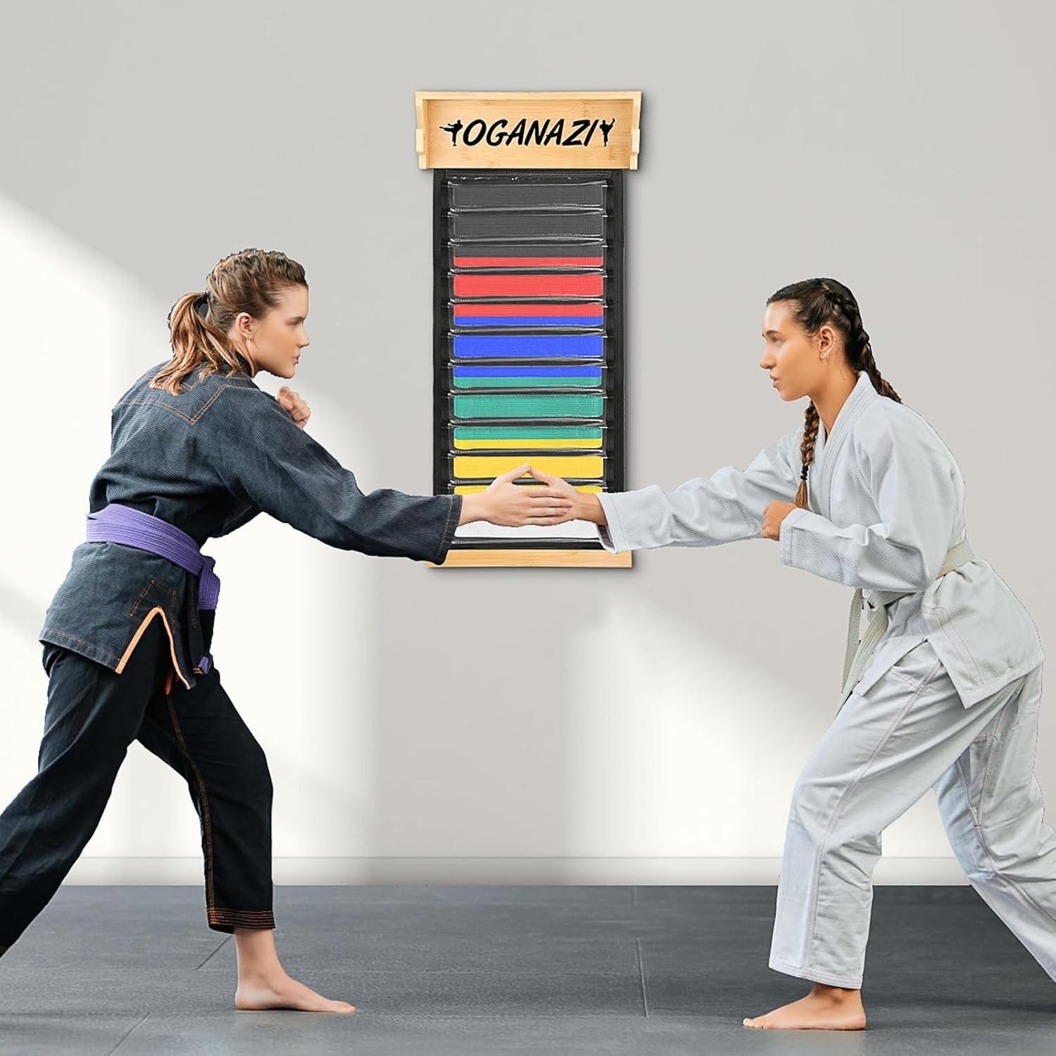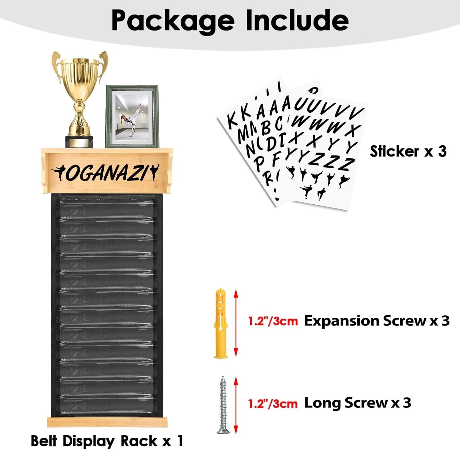 Product Size: The karate belt display can hold 12 belts, measures 14.7 inches long by 33.6 inches high, it offers 12 independent layered clear plastic slot designs, with enough space to accommodate every level of promotion from the white belt, middle belt, to the black belt symbolizing glory. The neatly hanging belts are like pieced together stories of growth, symbolizing the footsteps that have been taken step by step.
