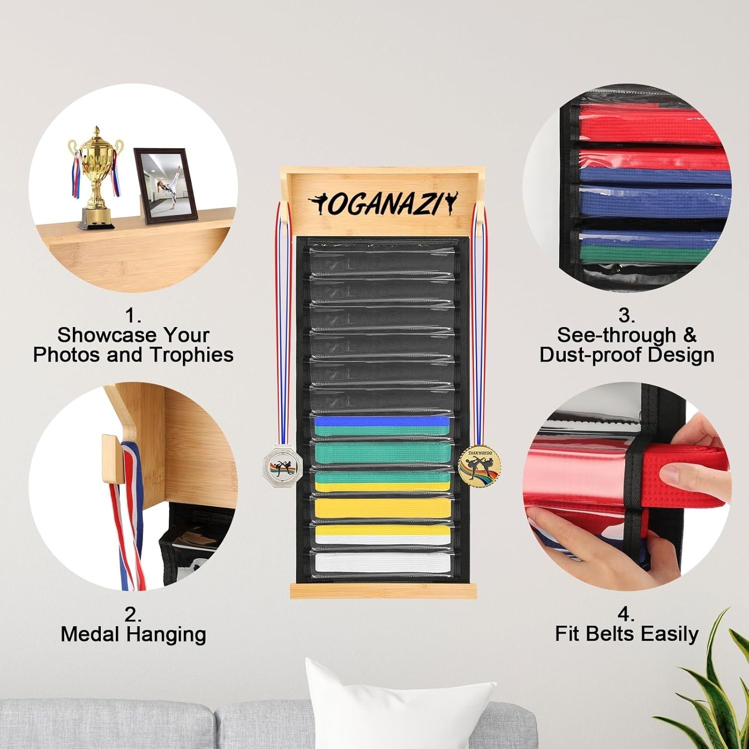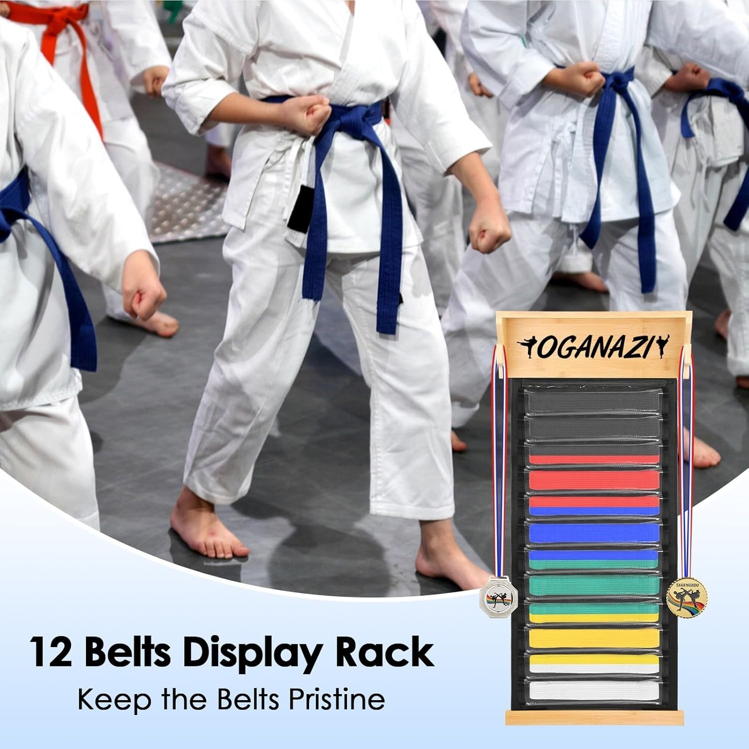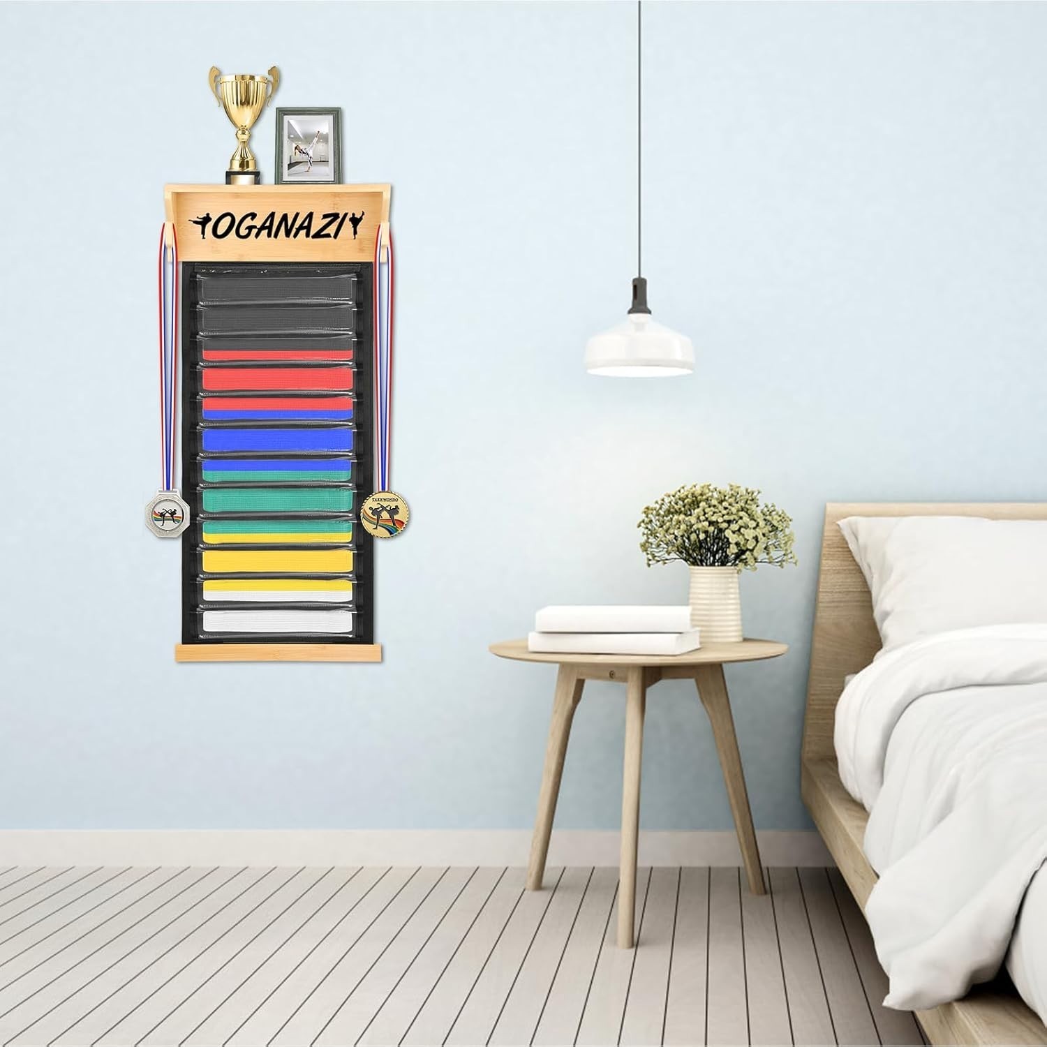 12 KARATE BELT ORGANIZER DISPLAY CASE Taekwondo Medal Hanger Trophy Photo Rack