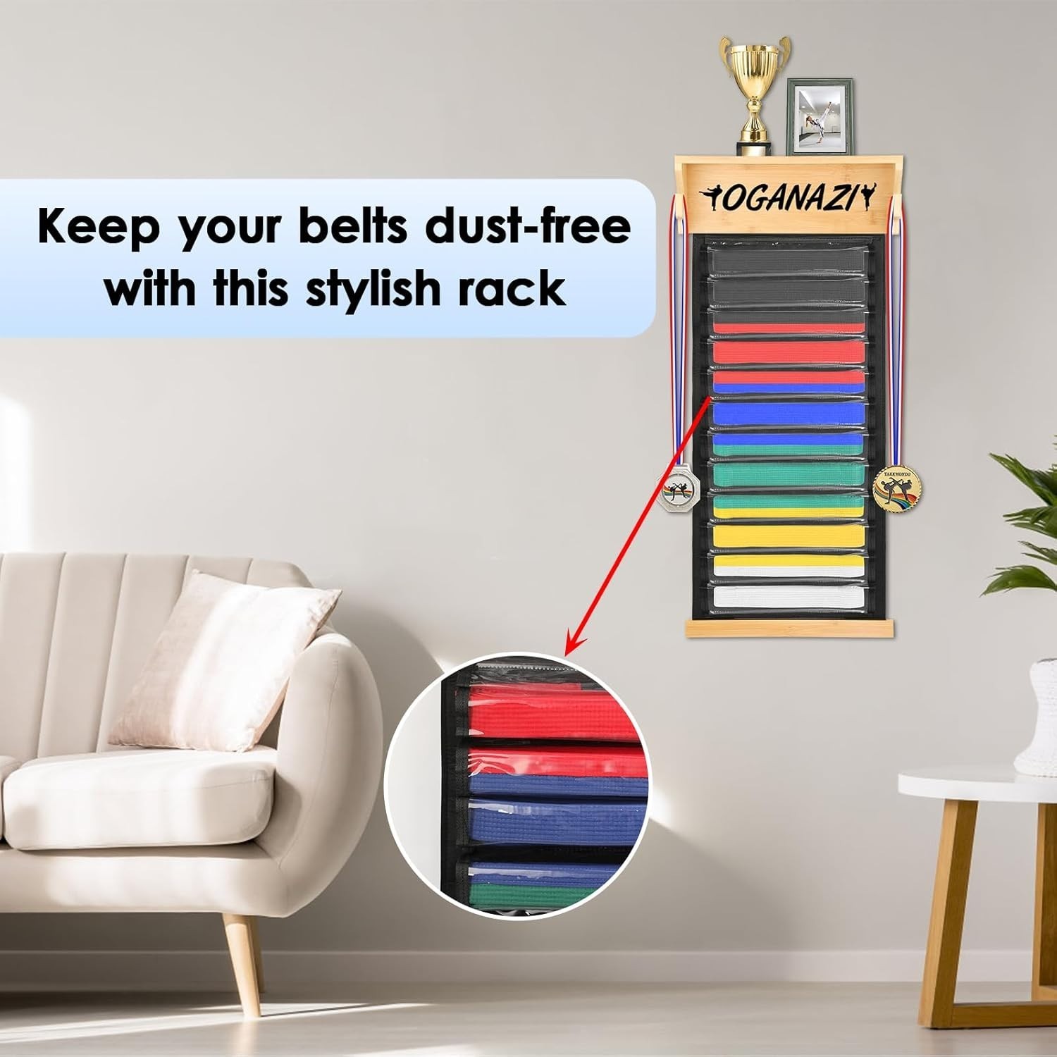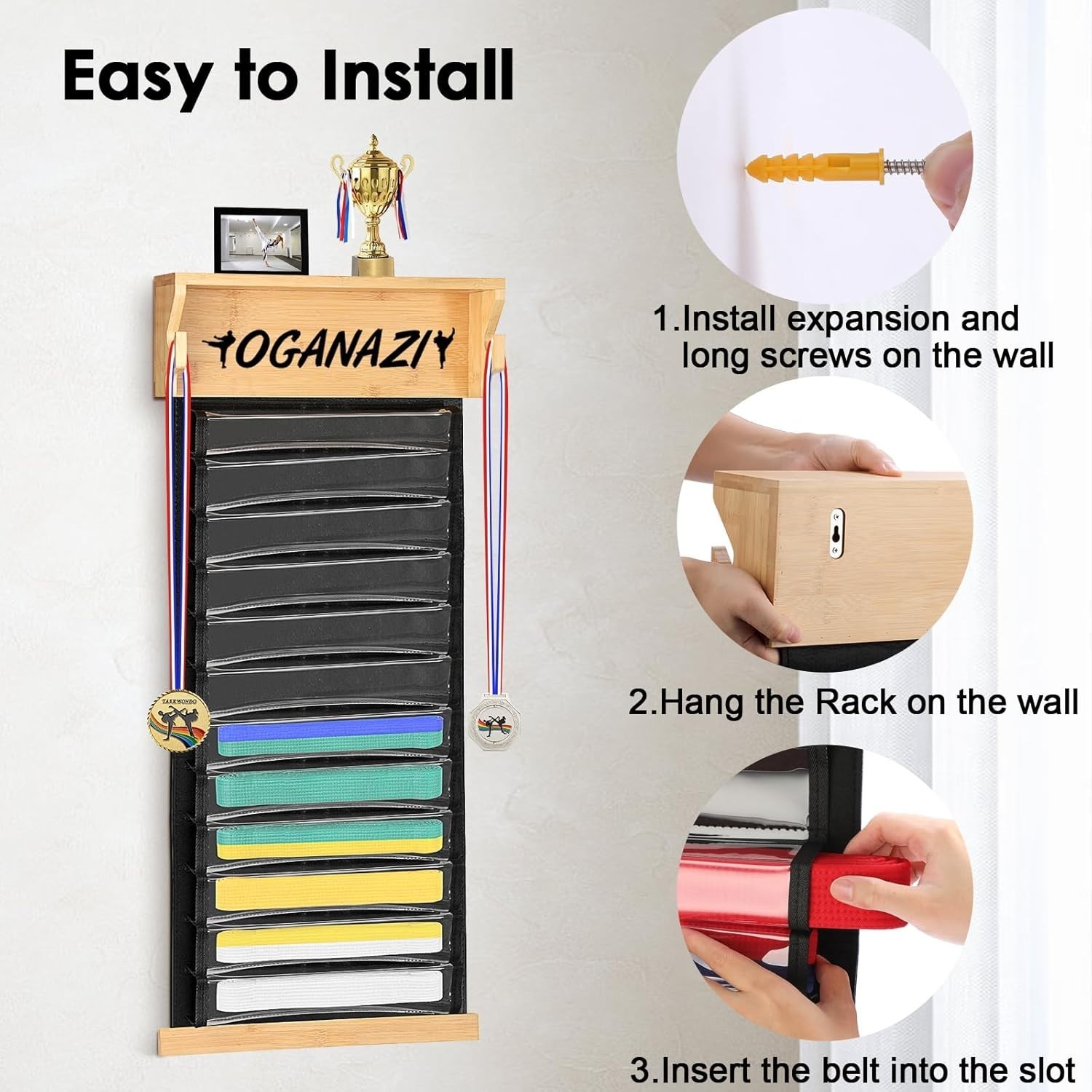 Dust-free Visible Design- The martial arts belts display holder features the clear plastic slot surface to keep each belt clean and tidy, protecting your belts from dust or dirt, displaying every belt clearly, allowing you to hold on to exciting moments, perfectly showcasing your glory and achievements.