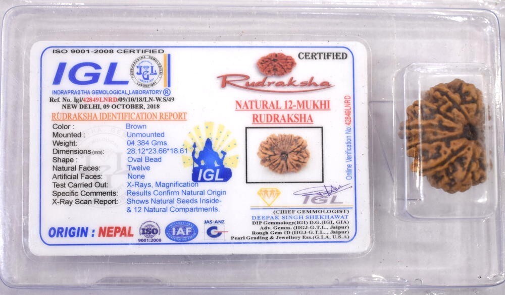 - 12 Mukhi Rudraksha - Collector Size - 28.12 mm - Nepal - IGL Certified