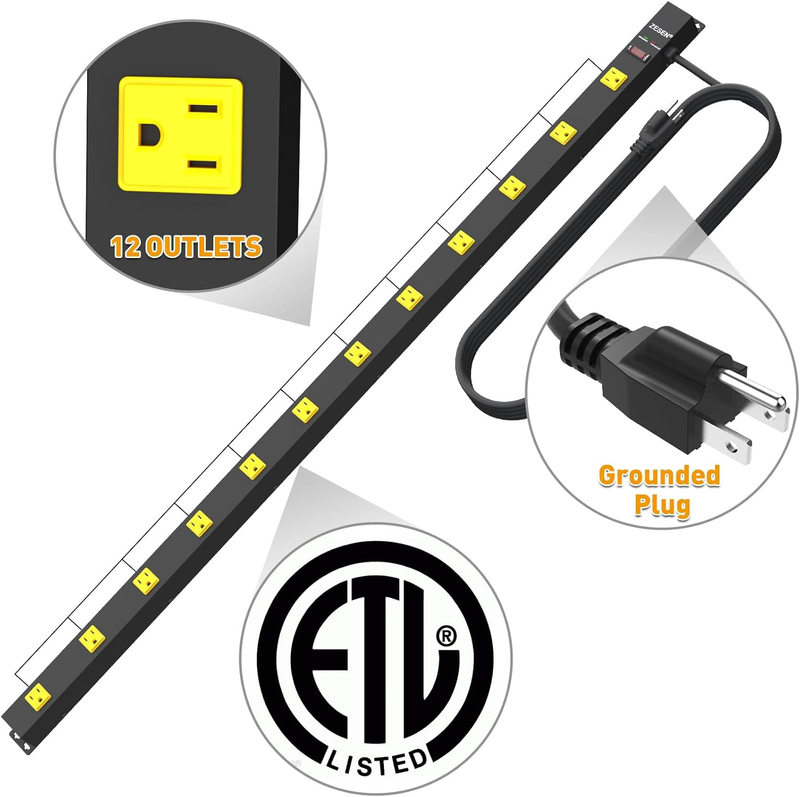 12 Outlet Heavy Duty Workshop Metal Power Strip Surge Protector with 15Ft
