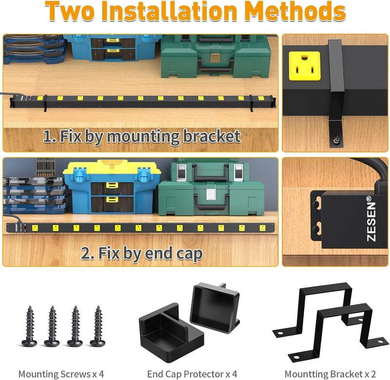 ? 15A/1875W Heavy Duty Metal Power Strip ? Durable black metal housing, 14 AWG /3C gauge extension cord, 15A / 125V / 1875W high power, perfect for workshop, enclosed garages, offices and schools. Home offices, enclosed garages, industrial, retail, workbench applications.