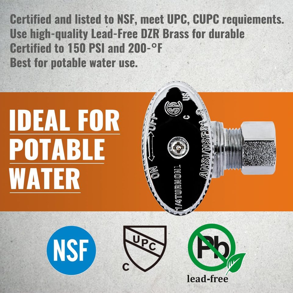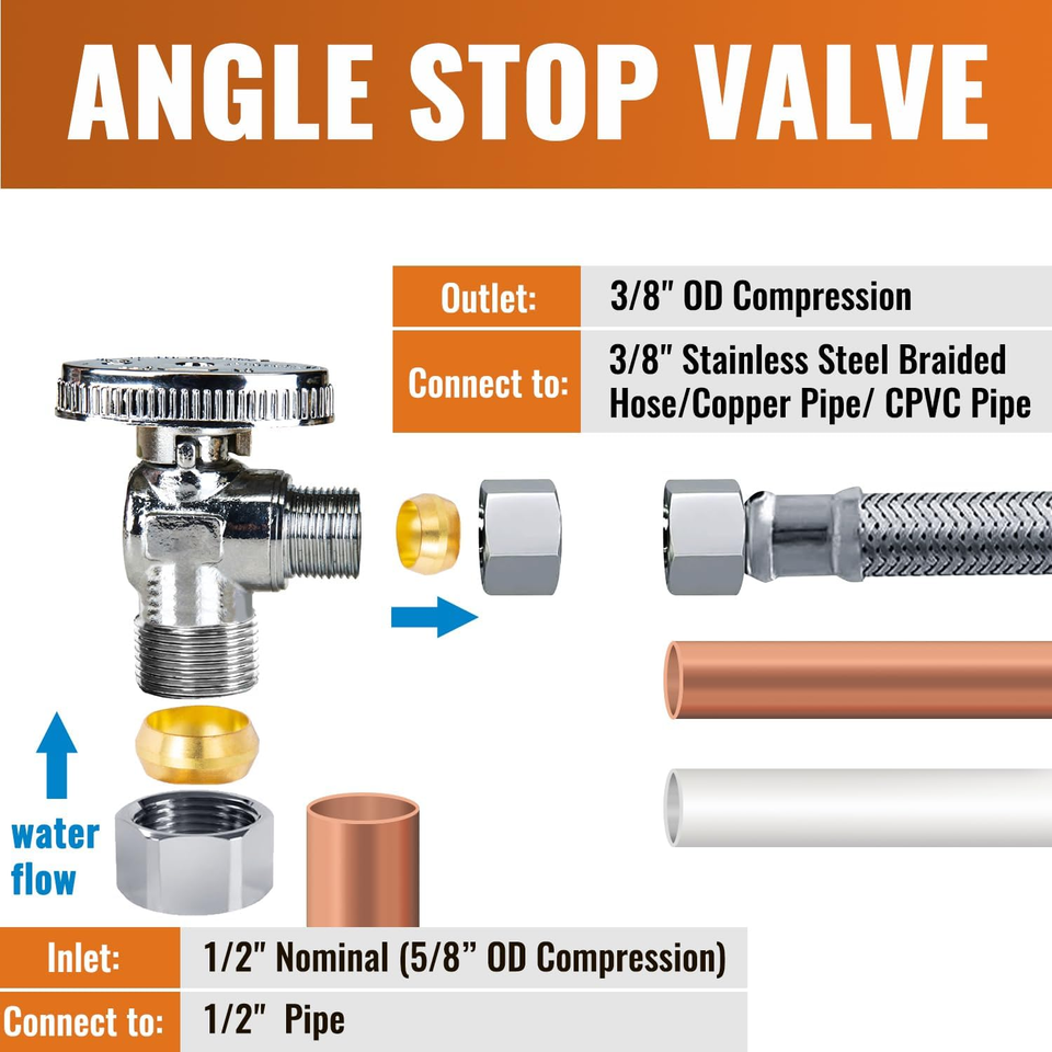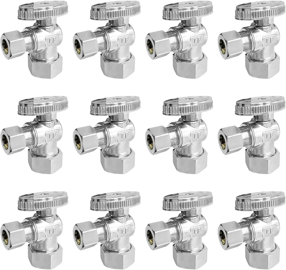 Upgrade your water supply connections with this high-quality 12-piece set of angle stop valves. Perfect for bathroom, kitchen, and toilet installations, these valves provide smooth operation, long life, and reliable shut-off control for residential or commercial use.