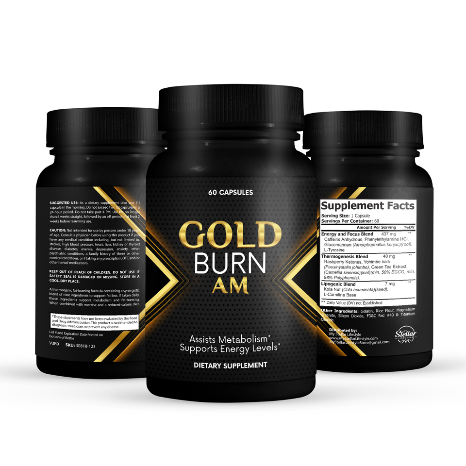 12 Pack Gold Burn AM, assists metabolism and support energy-60 Capsules x12