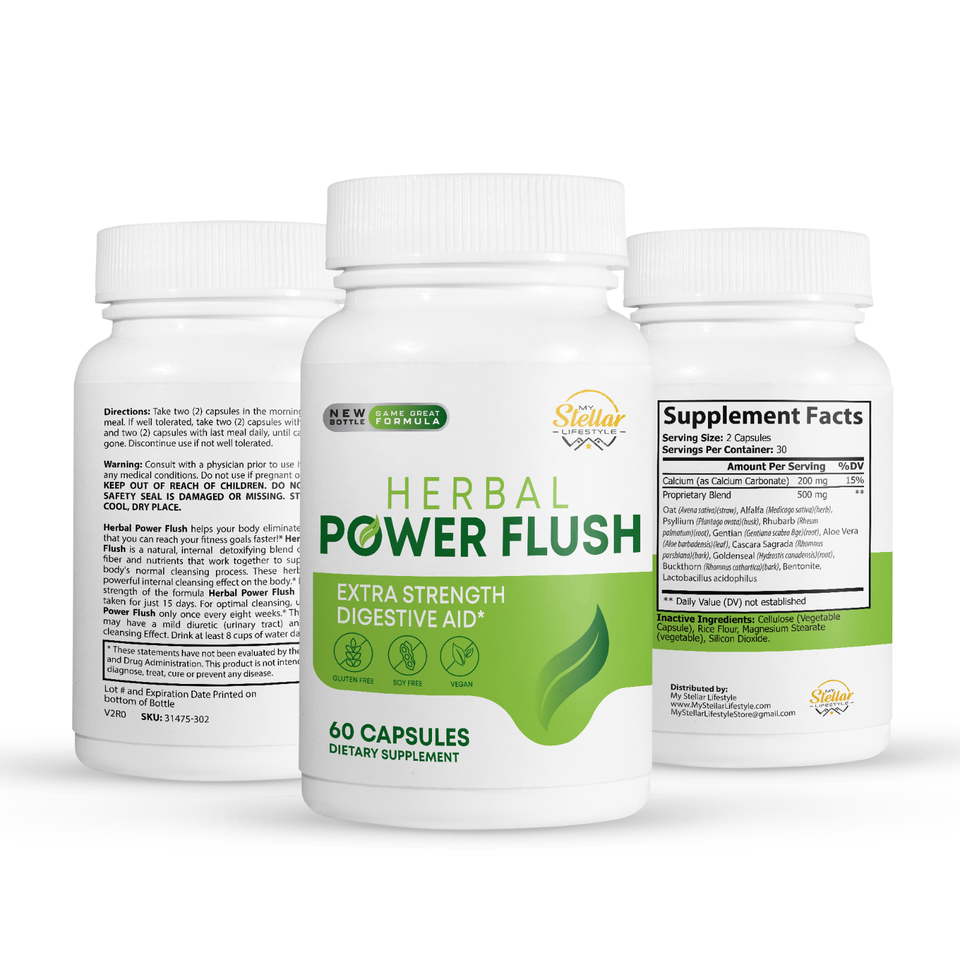 12 Pack Herbal Power Flush, ayuda digestiva extra fuerte-60 Capsulas x12