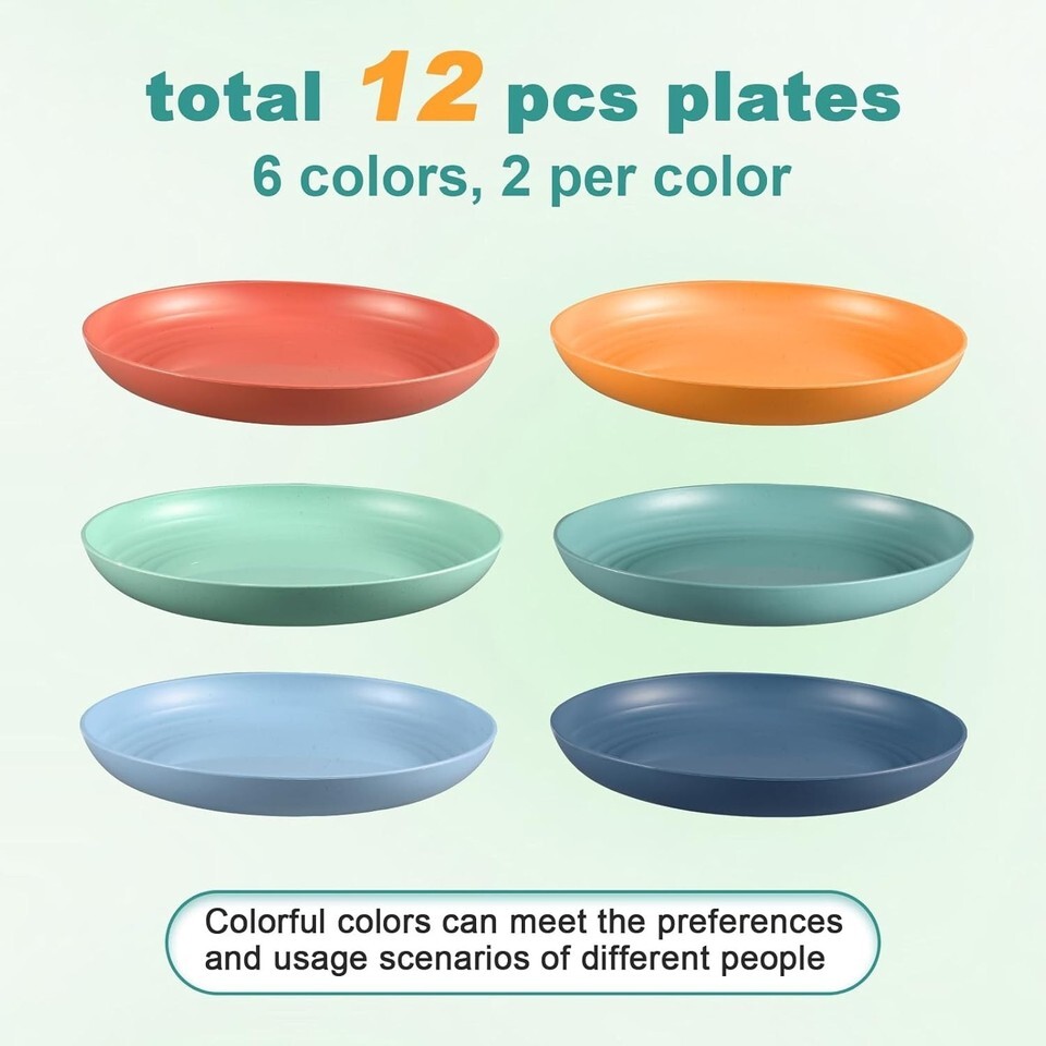 - 12 Pcs Unbreakable Wheat Straw Dinner Plates Set - 10 Inch in 6 Vibrant Colors