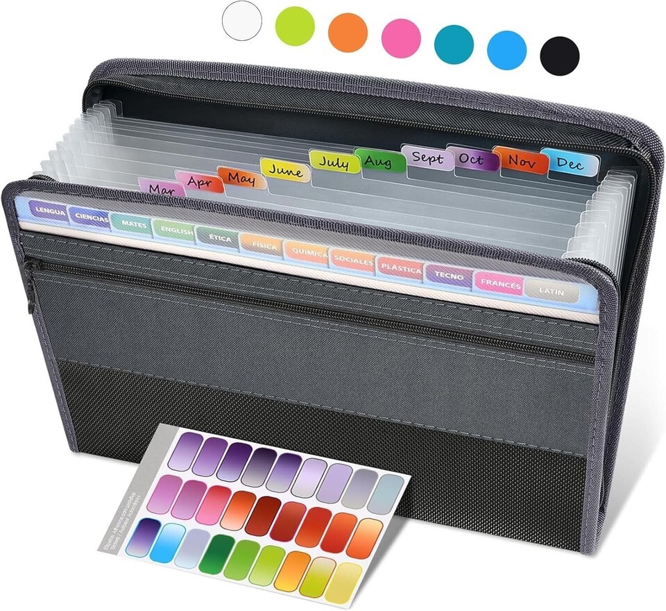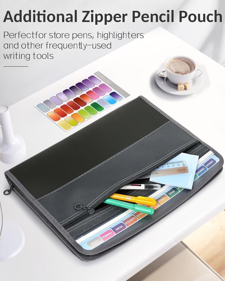 12 Pocket Expanding File Organizer with Secure Zipper - Portable Grey Design