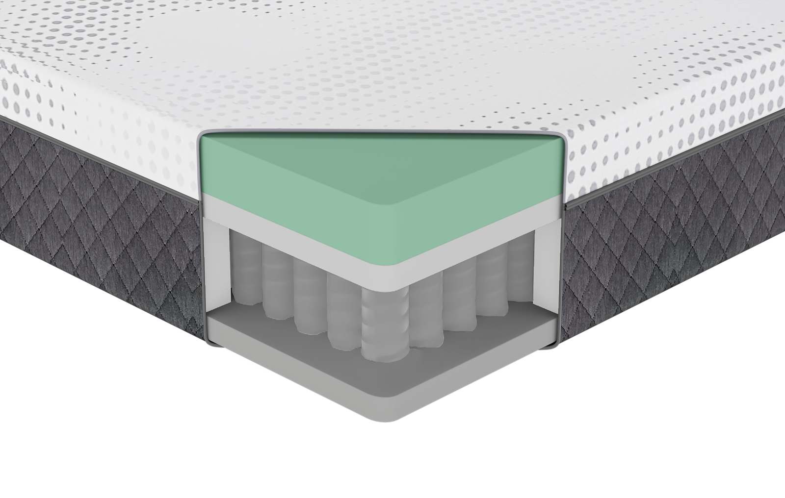 Made of green tea gel-infused memory foam, plush foam, pocket coil and charcoal-infused base foam