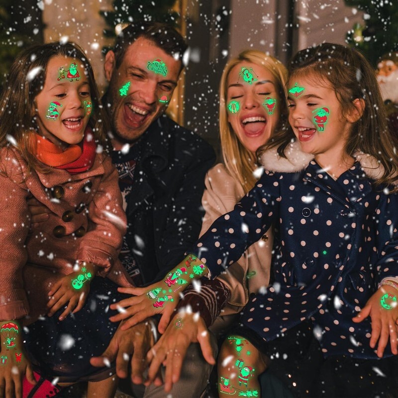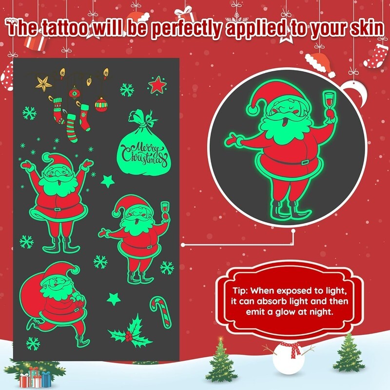 Magical Glow-in-the-Dark Effect: These special Christmas tattoos temporary absorb light during the day and emit a captivating glow at night, creating unforgettable magical moments for evening Christmas parties and nighttime festivities.