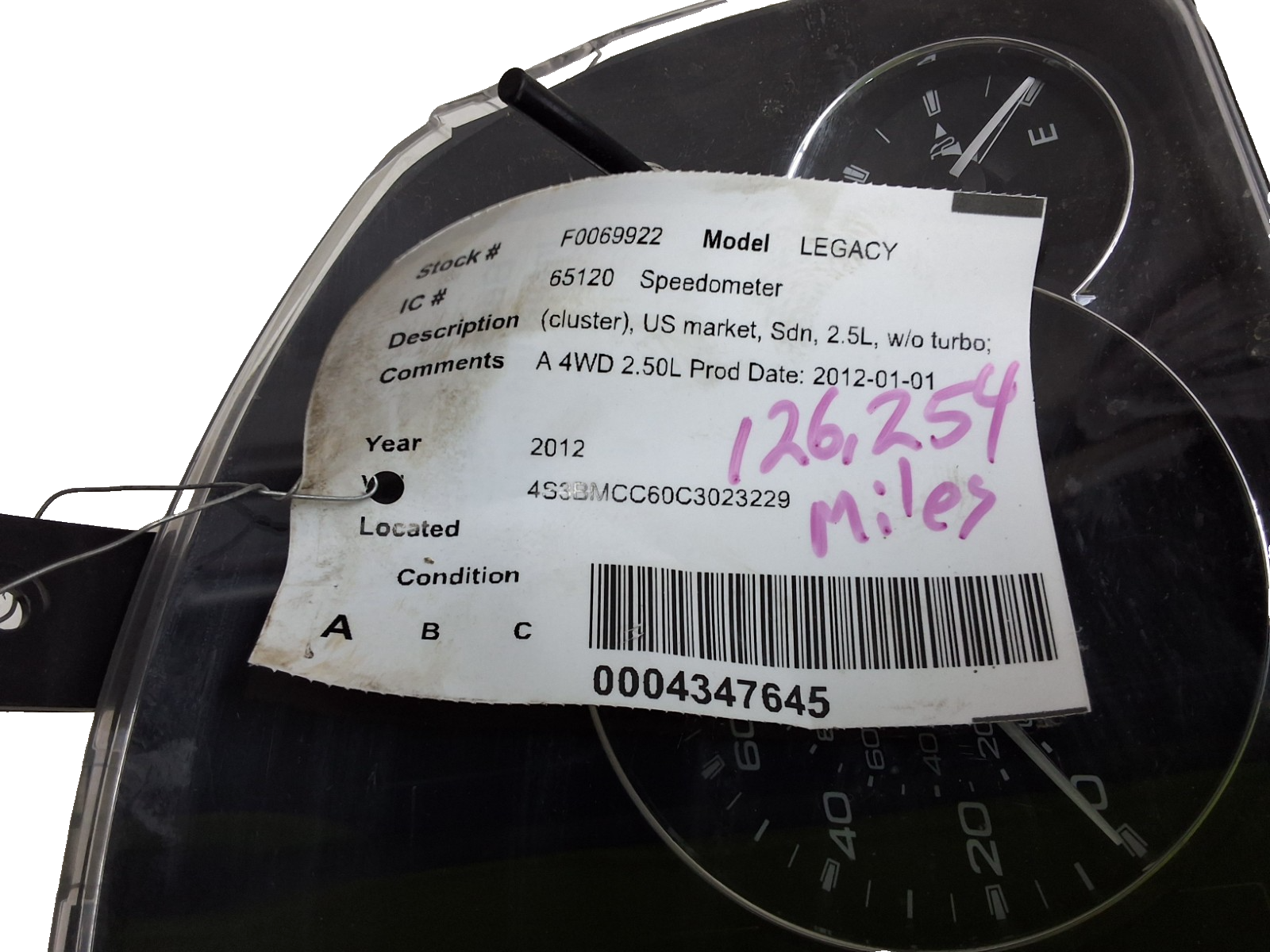 12 Subaru legacy sedan 2.5L non-turbo speedometer 126,254 miles 85003AJ61A