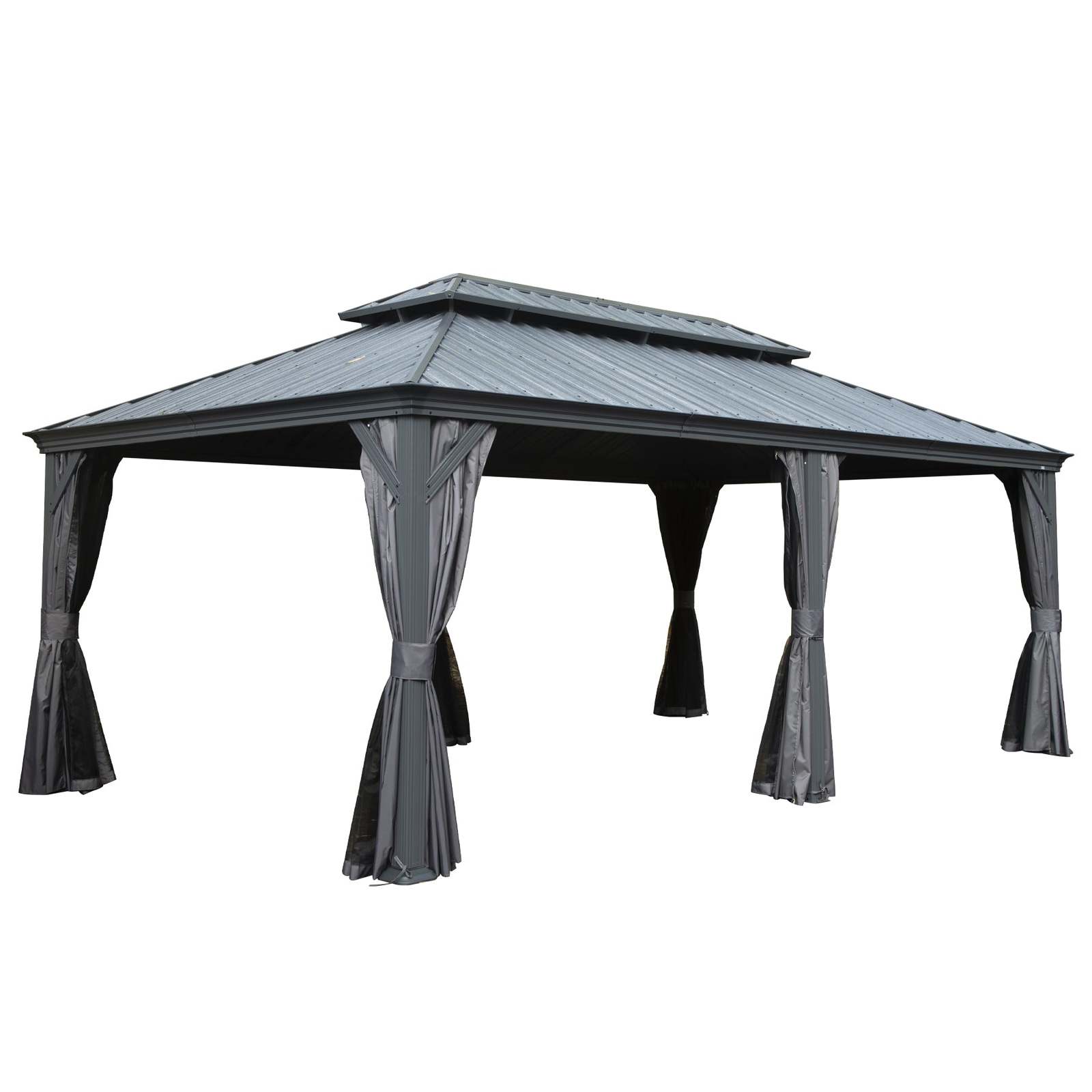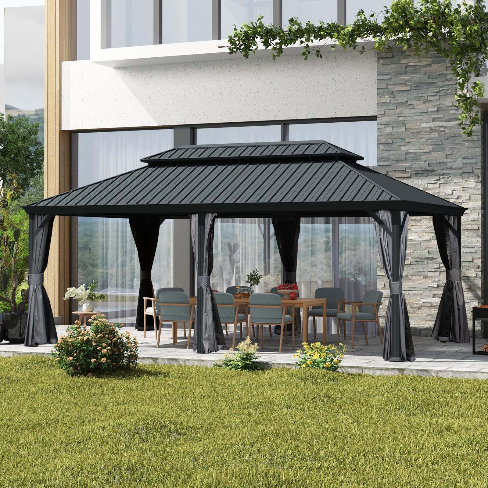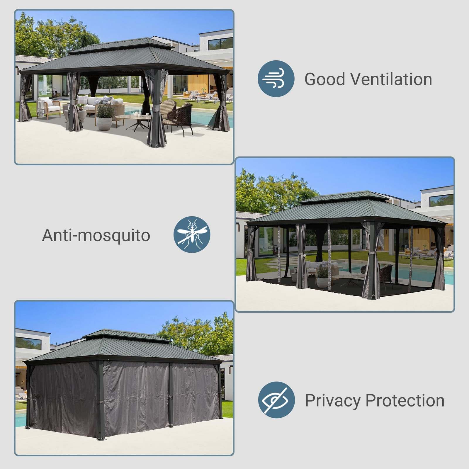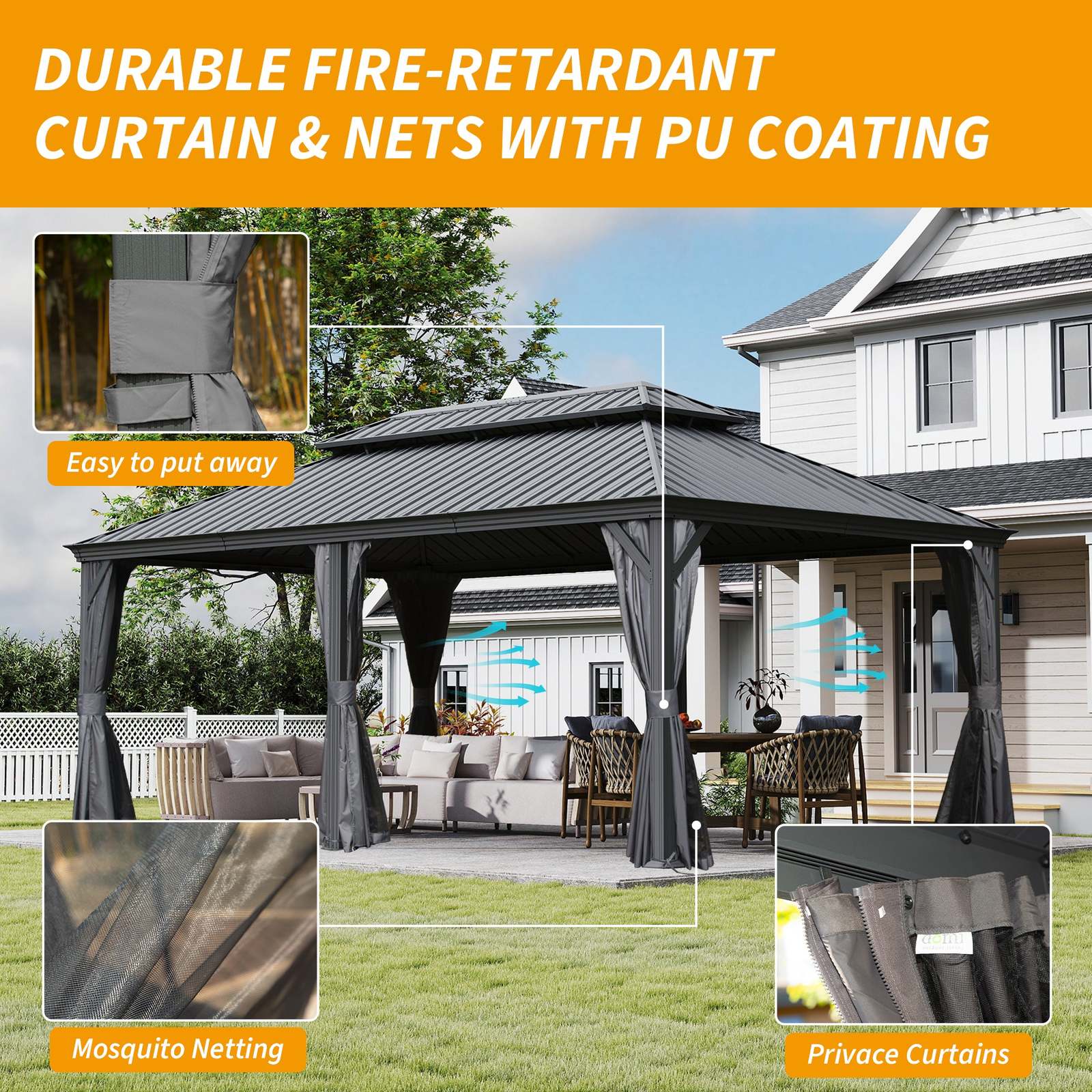 12'x18' Hardtop Metal Gazebo: Dual-Layer Steel Roof, Drainage, Curtains