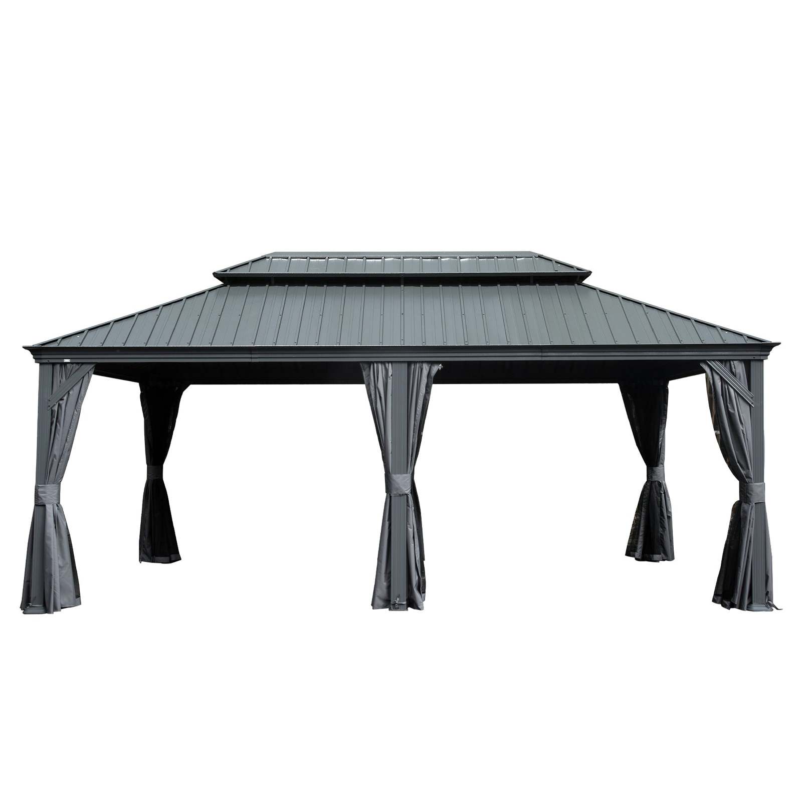 - 12'x18' Hardtop Metal Gazebo: Dual-Layer Steel Roof, Drainage, Curtains