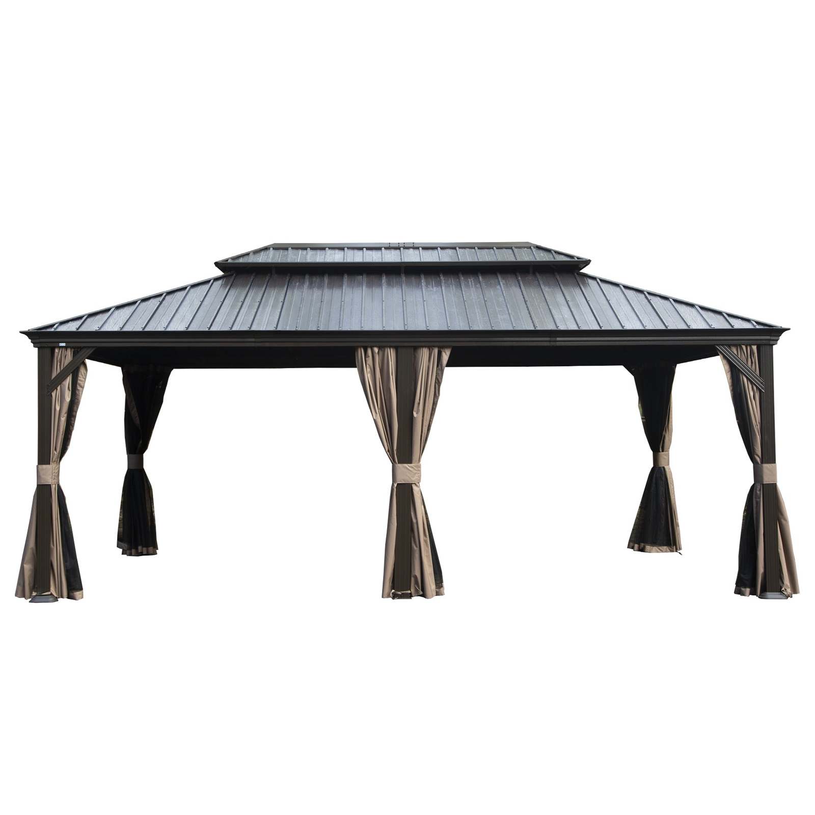 - 12'x20' Hardtop Metal Gazebo | Dual-Layer Roof, Curtains, Netting