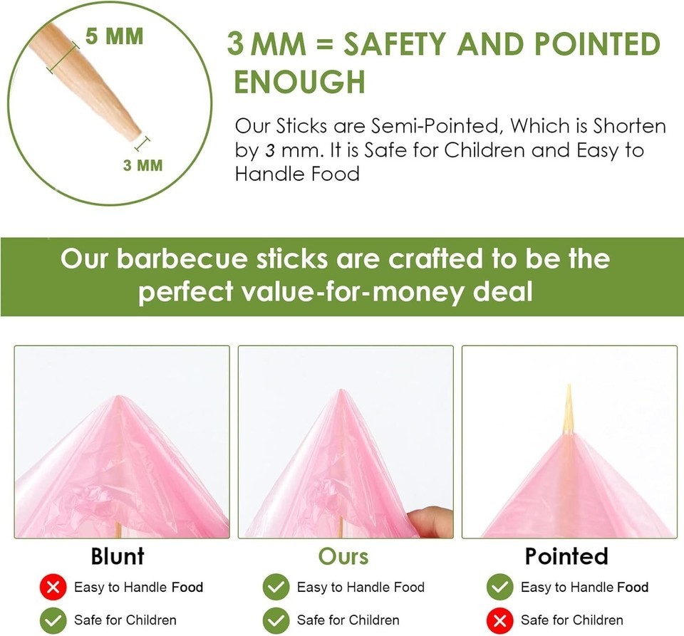 High Quality Material: Each skewer features a semi-pointed tip, ensuring ease of use while being polished to a smooth finish for a comfortable grip.