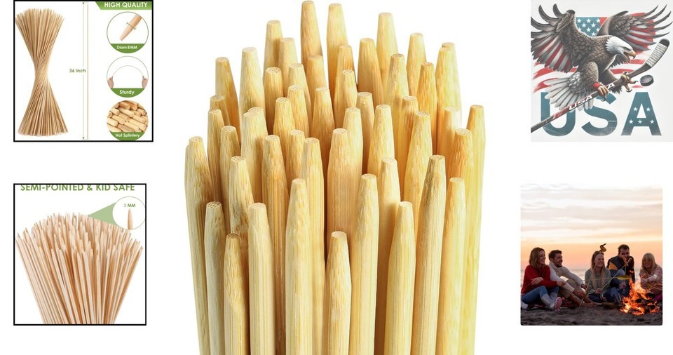 120PCS 36" Bamboo Marshmallow Skewers - Heavy Duty Disposable Roasting Sticks for Campfire BBQ
