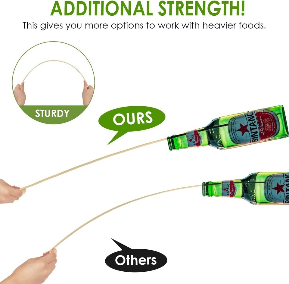 Eco-Friendly Convenience: Made from 100% natural bamboo, these biodegradable skewers offer a guilt-free solution to messy clean-ups; simply toss them in the fire after use.