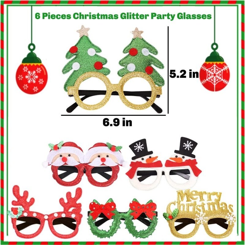- 12PCS Christmas Headbands and Glasses Frames, Christmas Party Glittered Glasses