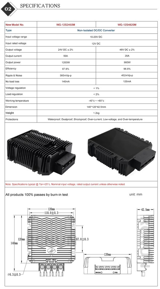 - 12V to 24V 50A 48V 20A DC to DC Converter Step up Booster Regulator Boat Vehicle