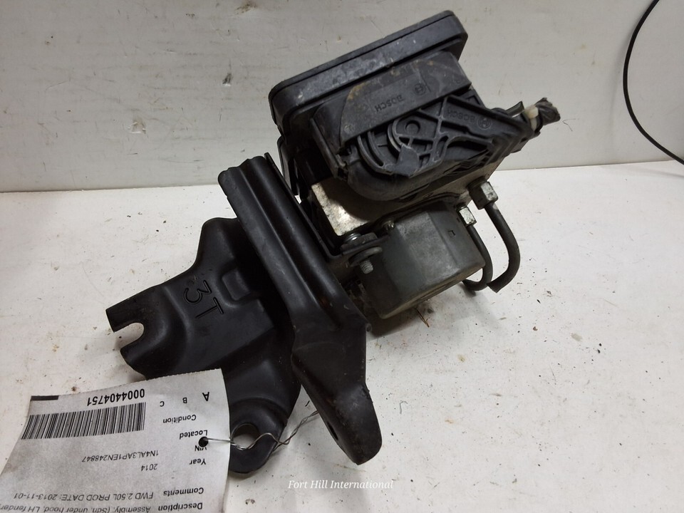 welcome to Fort Hill International Auto Parts Description 2013 to 2015 Nissan Altima sedan 2.5 L engine ABS pump. Verify Your Part Numbers To Ensure Proper Fit and Operation. Matching the year and vehicle is not always enough because there may be several variations of the part. This Is Your Responsibility To Make Sure The Part Is What You Need, And Will Work With Your Application. Your Part Numbers Need to MATCH To Be Sure! If you are purchasing any item that is electronic in nature such as Radio's, Control Modules, ECM, ECU, Please be aware that you may have to have the item programmed in order to function with your vehicle. Some will simply plug and play without programming. We Do NOT Supply Radio Unlock codes, They can be accessed from your local dealer, or manufacturers web site. T558-4404751 Payment Ready to order? We accept Paypal which allows you to pay with most major credit cards. Shipping We ship all orders within 24 hours. However it is up to you to choose the speed in which your item will arrive. All items come with free tracking which is uploaded to you once the postage is generated. We offer several shipping options please be sure to choose the one that will work best for you. Remember shipping times are only estimates and in no way a guarantee of arrival time. Terms of Sale Thank you for choosing Fort Hill International. All of our parts are used and in good working order when removed from the donor vehicle. Some electronic parts will have to be programed by a dealer or mechanic in order to work properly. Some Radios will require codes to "Unlock" them, others just plug and play. RDS Radios almost always have to be dealer installed. Codes can be obtained from your local dealer or over the net by typing "radio codes" into your browser. We do not supply codes or cover installation expense. If your unsure if your part needs programing contact us or your dealer before purchase and we will do our best to help you out. . Contact Us Email with specific Questions, Its up to you to verify interchange and that this is the part you need. Return Policy 1. Please contact us before returning any item, Lets try to work it out first. 2. All parts are used and in good working order to the best of our knowledge. At times your dealer may have to reprogram your vehicles computer in order for the replacement part to work correctly. This Includes Some Radios, Modules, and Computers. Some Will Simply Plug N Play. 3. If your order had free shipping on it, the original shipping charges will be deducted from the refund. If it is our error we will refund your original shipping charges. You are still responsible for returning the item. 4. Buyer Pays Return Shipping. 5. As is parts are just like it says and are not returnable for any reason. 6. We do not guarantee color matching on parts. 7. All costs associated with installation are the buyers responsibility. 8. You are responsible for making sure you are ordering the correct part for your application. 9. In the event you need to return your item please make sure the original tag is included. All of our parts are marked prior to shipment for identification purposes. These ID marks must be on the part in order for the return to be accepted Track Page Views With Auctiva's FREE Counter