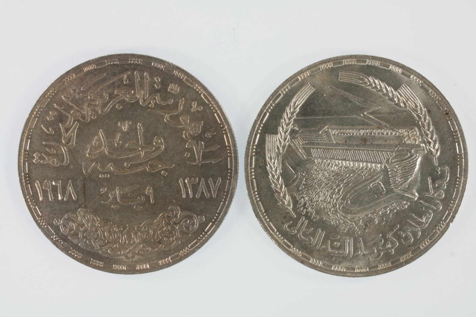 1387-1968 Egypt 2-Corner Silver Kit 1 Pound Coins Aswan Dam Commemorative- sh...