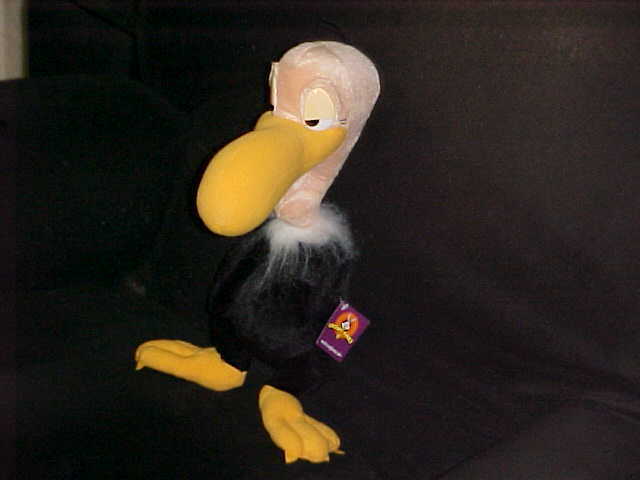 Hello everyone, Now at bottom of each of our item page is our word rating plush chart. Please check it out and read full item description before using the buy it now price. Ok here's a extremely rare Looney Tunes large version of Beaky Buzzard Plush You With Tags, which is in excellent use condition. Beaky Buzzard is black, tan and orange shade of color plush, hang tag attach to left hand, shiny eyes (some wear on right eye, Please see pic 3), black stitch mouth, orange hanging loop on back of neck and measures 14 inches tall. Tush seam tag reads Nanco Warner. Please see picture's. Winner bidder pays by Zone and Zip Code for priority mail shipping (up to 2 lbs) with handling of (1.50 h-fee), plus required delivery confirmation fee US only. Sorry we do Not Ship to Canada or Internationally. Please only bid if you have a united states street address to ship to. I'm Sorry but I have to Use Immediate payment by Paypal when buyer uses Buy It Now, E-Checks from Paypal are held 3-5 business days until it clears before item is ship. Since we are limited on our picture space, pic will be deleted after the end of auction, so if you would like to see pic after the auction, please print out picture before the auction ends. We due not do accept returns, so Please read full item description, all sales are final and are sold as worded in item description, as this is an legal auction. All items are offer as is condition. We ship as soon as payment arrives. Please take a moment and check out our other great Disney plush and character toys which are listed sale this week. New Rating Plush Chart. NEW: Comes from a factory or department store and has not played with. MINT Or LIKE-NEW: Looks new but might still been played with but shows no wear on the Plush itself but still might have a flaw (like a odor, etc., and might not been wash even though we strive very hard to make all our plush smell free but can not guaranteed them) EX. COND: Some minor play wear and might have some minor flaws which would be in the item description. VERY GOOD: Has been played with and has flaws. GOOD: Has been played with a lot. POOR: We try not to sell any real poor condition toys. Thank-You and Have A Fantastic Week