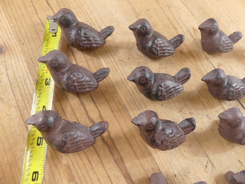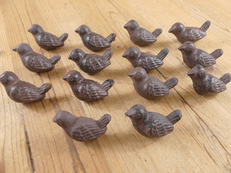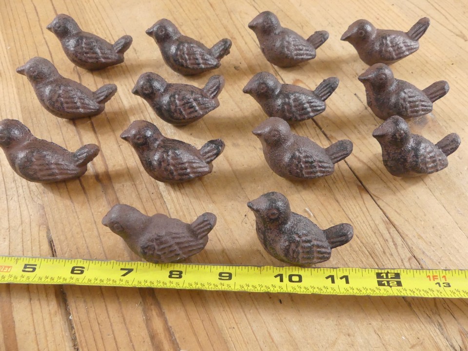 14 CAST IRON BIRD DRAWER PULLS! SCREWS INCLUDES TOO! PLEASE BE AWARE THESE ARE A DIFFERENT SHADE OF RUSTIC BROWN COMPARED TO OTHERS I HAVE LISTED. 14 CAST IRON BIRD DRAWER PULLS! SALE INCLUDES 14! PULLS ARE APPROXIMATELY 2 1/4" LONG! SCREWS INCLUDES TOO! SHIPPED OUT WITHIN ONE BUSINESS DAY, SO YOU CAN GET FAST! FREE SHIPPING!