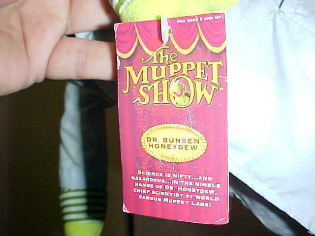 Hello everyone, Now at bottom of each of our item page is our word rating plush chart. Please check it out and read full item description before using the buy it now price. Ok here's The Muppets Rare large Dr. Bunsen Honeydew Plush Doll With Tags, which is in excellent use condition. Dr. Bunsen is wearing his baby blue lab coat, olive green vest, red tie, black pants and black glasses. Only his lab coat is removeable. Dr Bunsen also has a green head and hands, black mouth, hang tag (good condition, see pic 2) attach to left hand, and measures around 14 inches long. Tush body seam tag reads, 2003 Sababa Toys Jim Henson. Please see picture's. Winner bidder pays by Zone and Zip Code for priority mail shipping (up to 2 lbs) with handling and required delivery confirmation of (2.55), US only. Sorry we do Not Ship to Canada or Internationally. Please only bid if you have a united states street address to ship to. Sorry but Immediate Paypal payment is required when using Buy It Now, E-Checks from Paypal are held 3-5 business days until it clears before item is ship. Since we are limited on our picture space, pic will be deleted after the end of auction, so if you would like to see pic after the auction, please print out picture before the auction ends. We due not accept returns or do any refunds, so Please read full item description, all sales are final and are sold as is worded in item description because I sell mostly older and vintage plush toys which haven't been manufactured in 10, 20, 30 + years. All items are offer as is condition. We ship most of the time following day after receiving the buyer's payment. Please take a moment and check out our other great Disney plush and character toys which are listed sale this week. New Rating Plush Chart. NEW: Comes from a factory or department store and has not played with. MINT Or LIKE-NEW: Looks new but might still been played with but shows no wear on the Plush itself but still might have a flaw (like a odor, etc., and might not been wash even though we strive very hard to make all our plush smell free but can not guaranteed them) EX. COND: Some minor play wear and might have some minor flaws which would be in the item description. VERY GOOD: Has been played with and has flaws. GOOD: Has been played with a lot. POOR: We try not to sell any real poor condition toys. Thank-You and Have A Fantastic Week