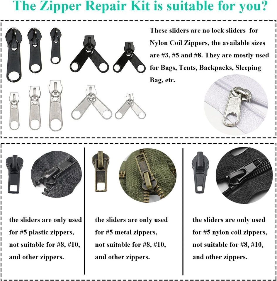 NOTICE: Please confirm your zipper size and type before purchase. For those unfamiliar with zipper repairs, this kit may not be suitable.