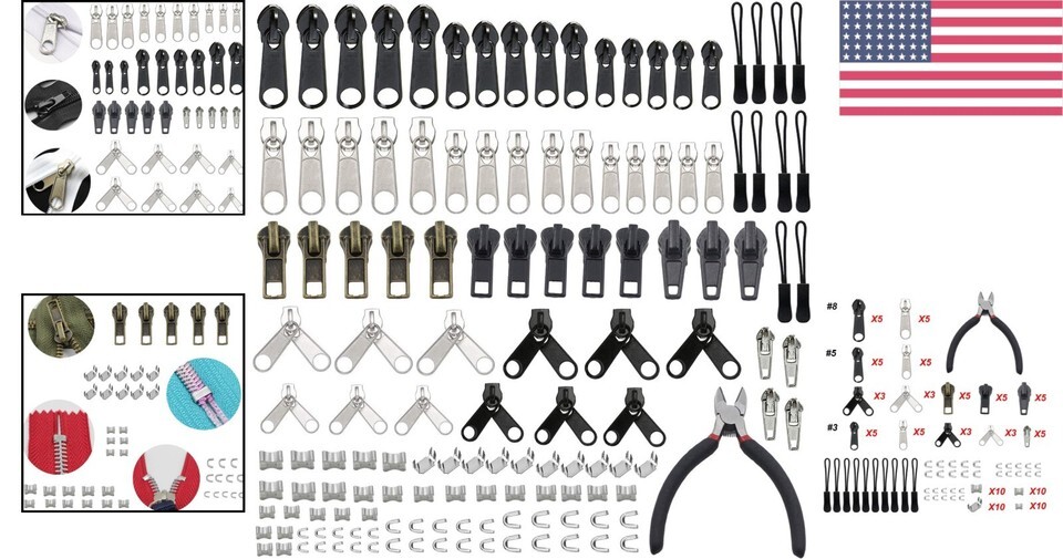 - 143 PCS Zipper Repair Kit with Install Pliers for Bags, Tents, and Backpacks