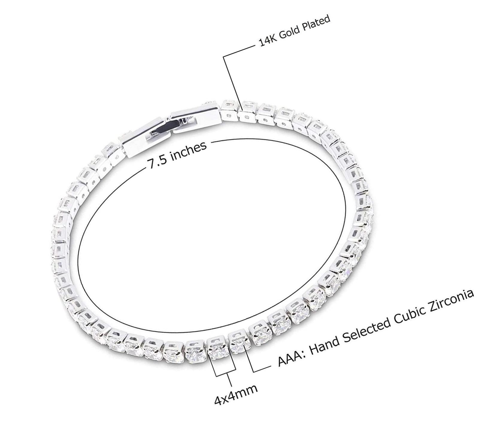 14K Gold Plated Cubic Zirconia Round 4MM Classic 7.5