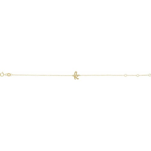 - 14K Yellow Gold Initial K Adjustable 7.5 inch Chain Bracelet