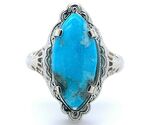 14k Gold Art Deco Genuine Natural Turquoise Marquise Filigree Ring (#J5187)