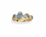 - 14k Gold Plated 925 Sterling Silver Blue Multi Gemstone Women's Fashon Ring