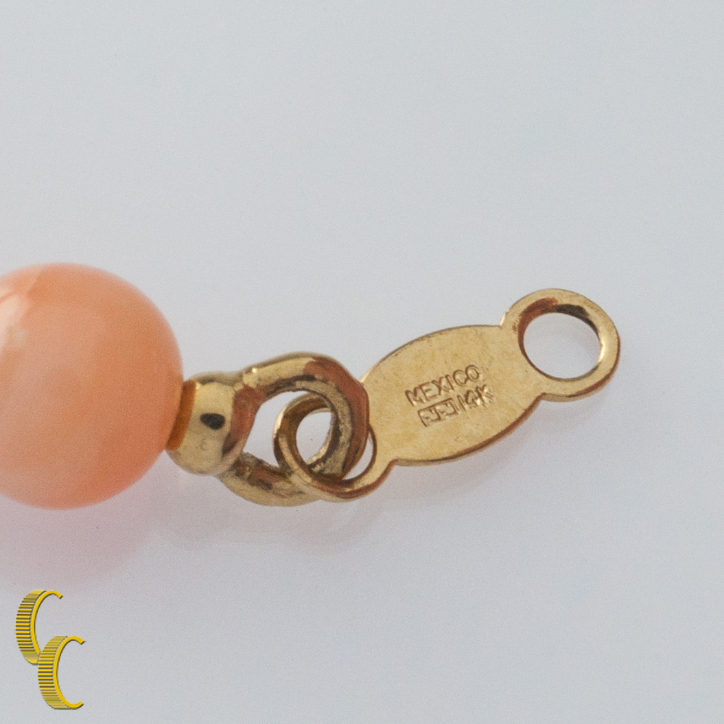 Bracciale con perline rotonde in oro giallo 14k e perline di corallo con chiusura a moschettone lungo 6,75 pollici